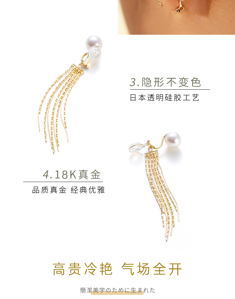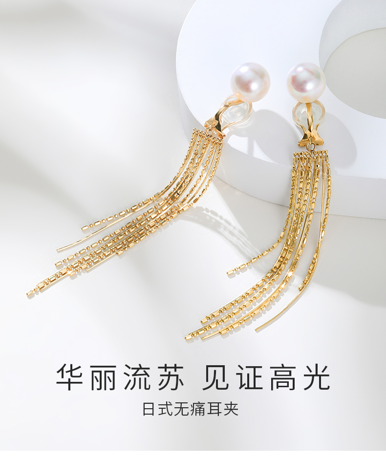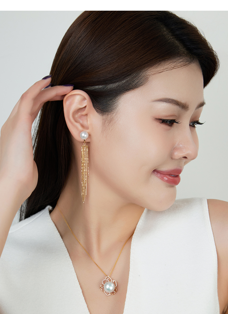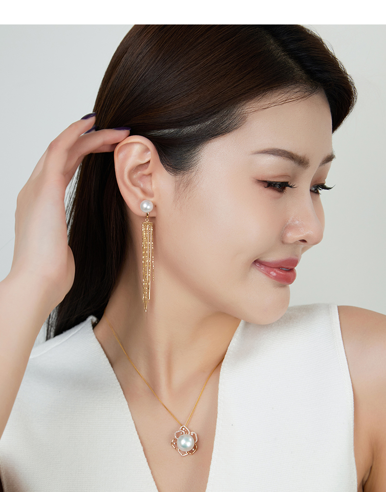【天猫同款】悦甄 澳白流苏 18K金澳白珍珠流苏耳夹