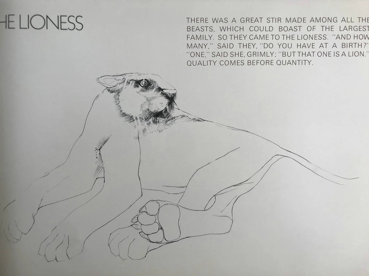 限量250册伊莉莎伯·弗林克女爵士签名特装本!1968年 伊索寓言 现代石版画插图 全真皮精装8开