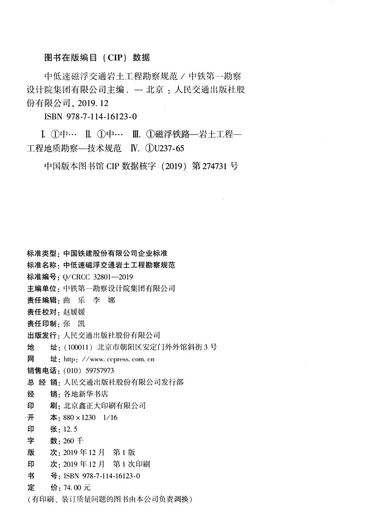 书名:中低速磁浮交通岩土工程勘察规范