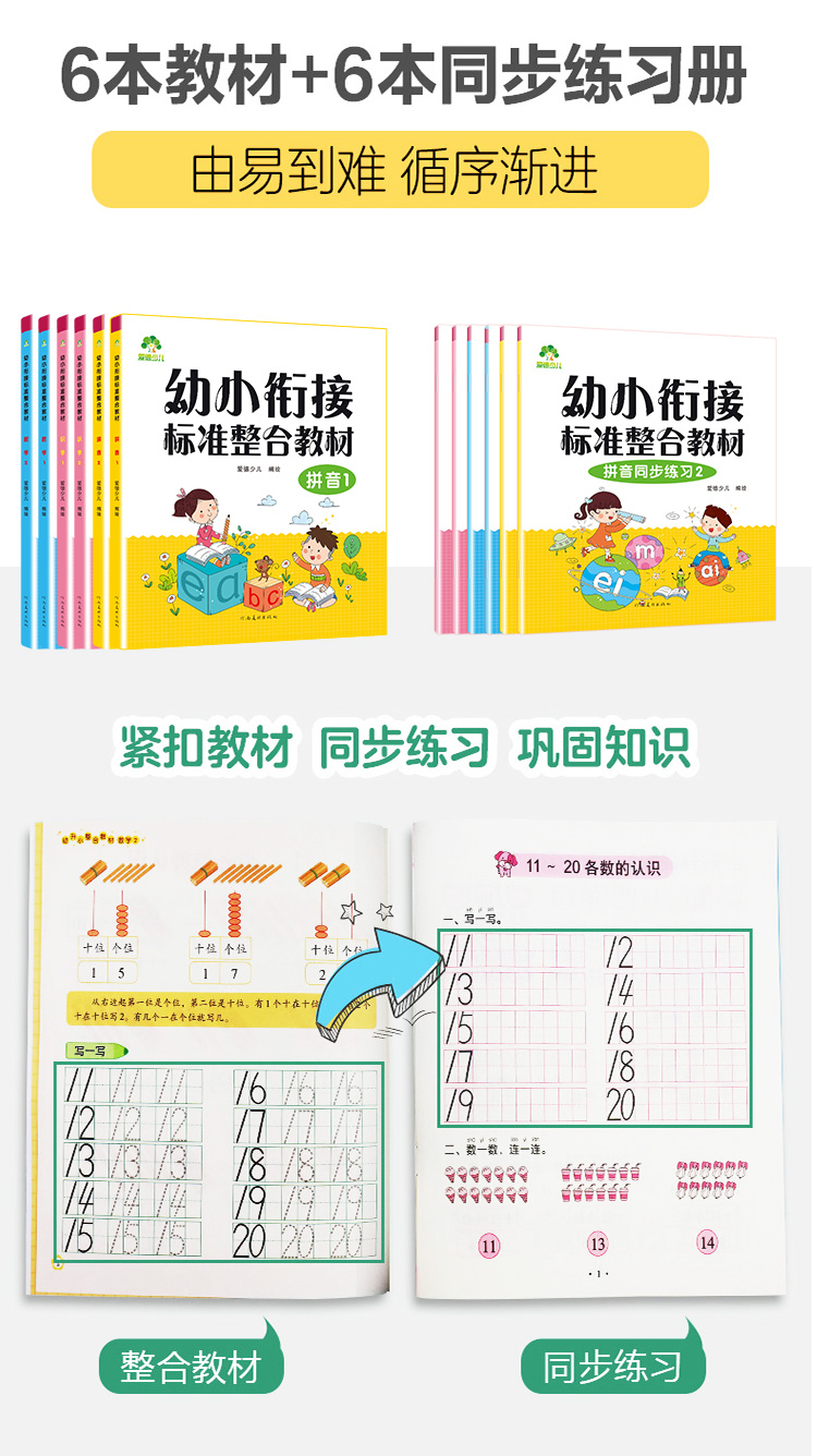 幼小衔接标准整合教材全套一日一练拼音识字数学教材同步练习册天天练学前班幼儿园中班大班幼升小