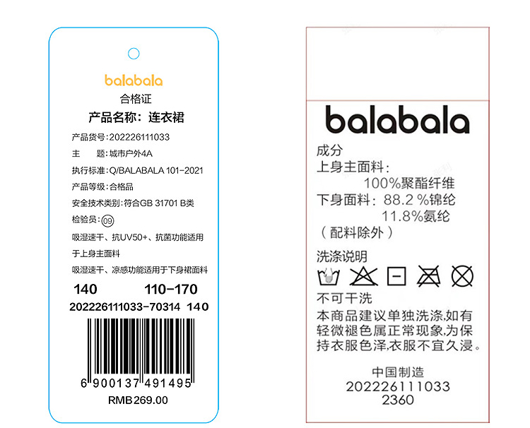 【商场同款】巴拉巴拉童装女童裙子儿童连衣裙2026新款夏速干防晒