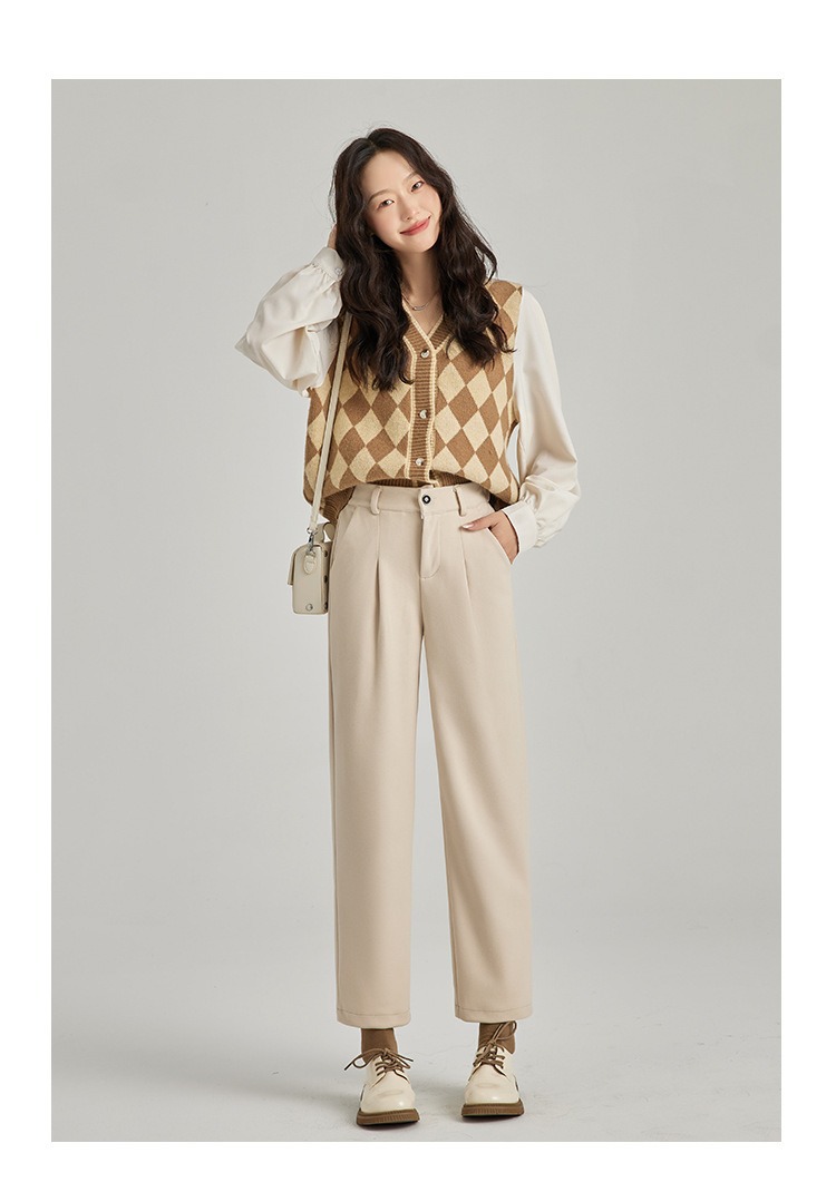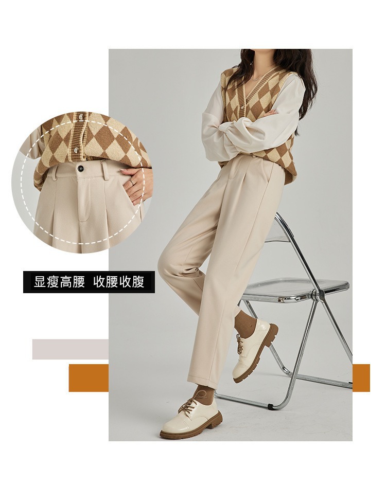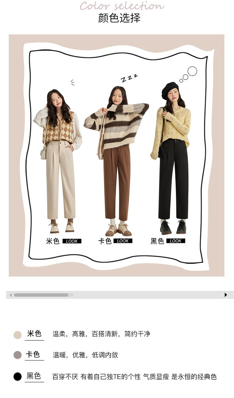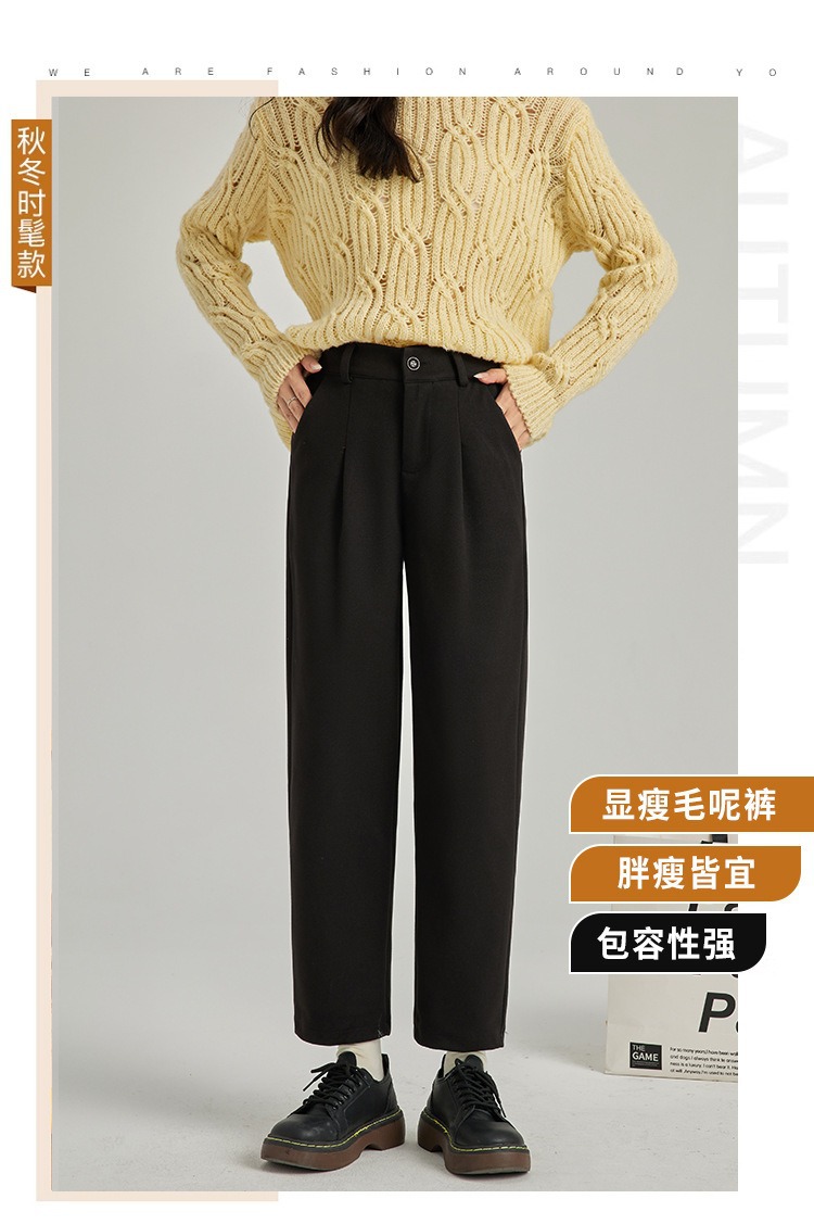 「高质感!秋冬毛呢裤」毛呢裤子女秋冬季2024新款显瘦萝卜奶奶裤宽松直筒加绒休闲哈伦裤下装