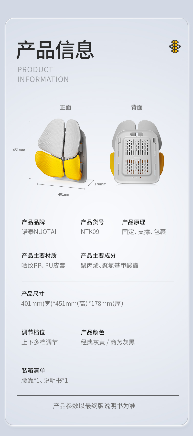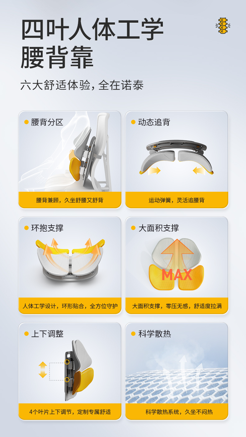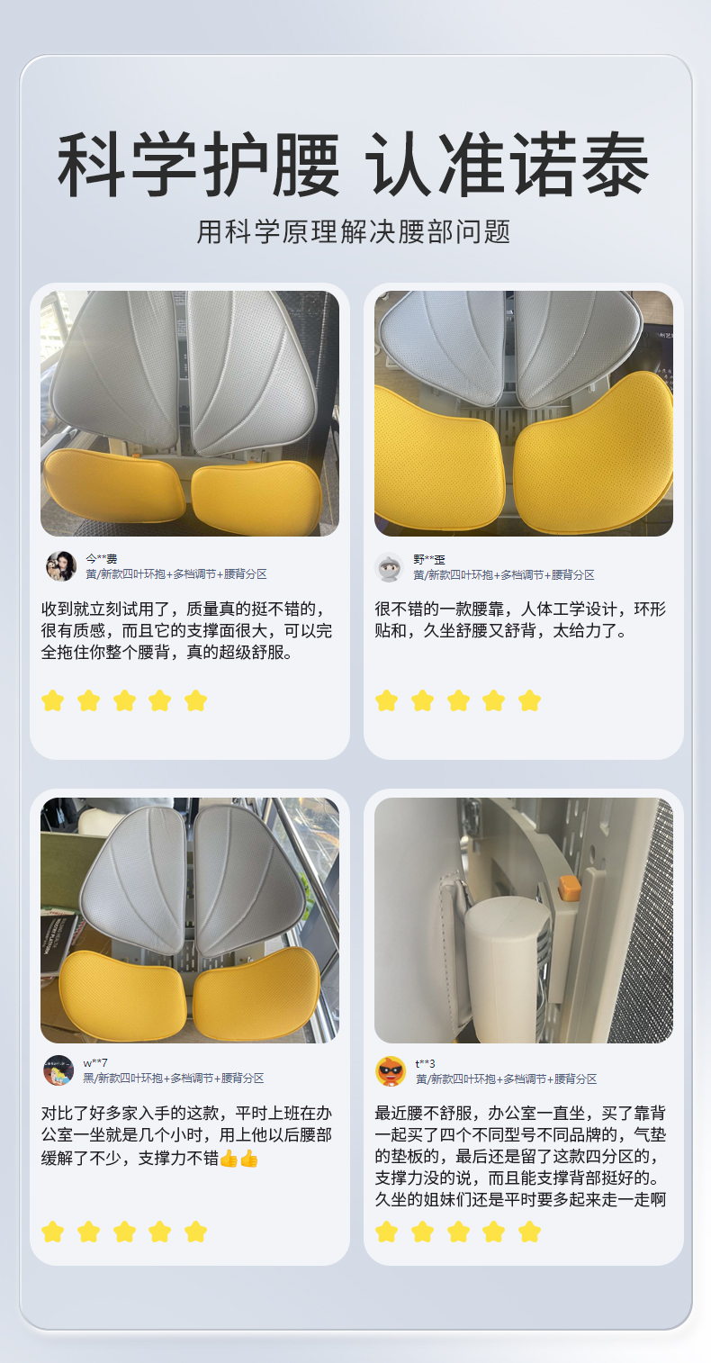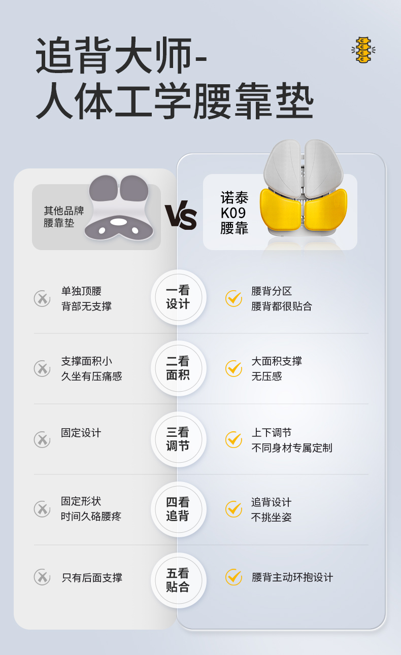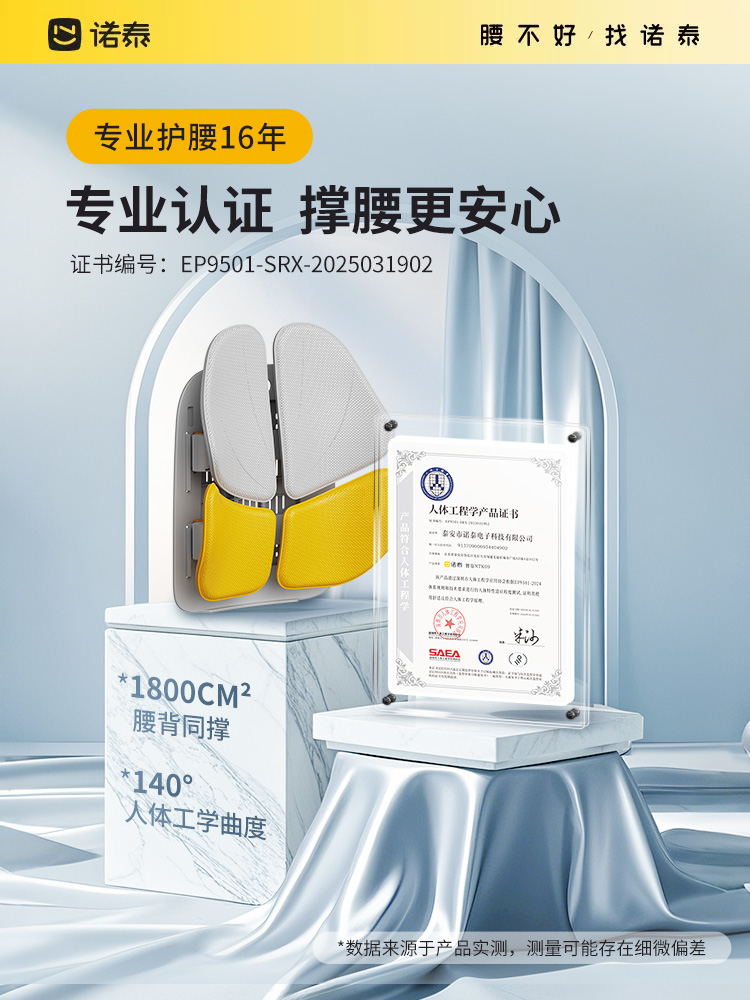 诺泰人体工学靠垫办公室护腰靠背垫护腰椅子靠垫久坐腰垫座椅腰靠