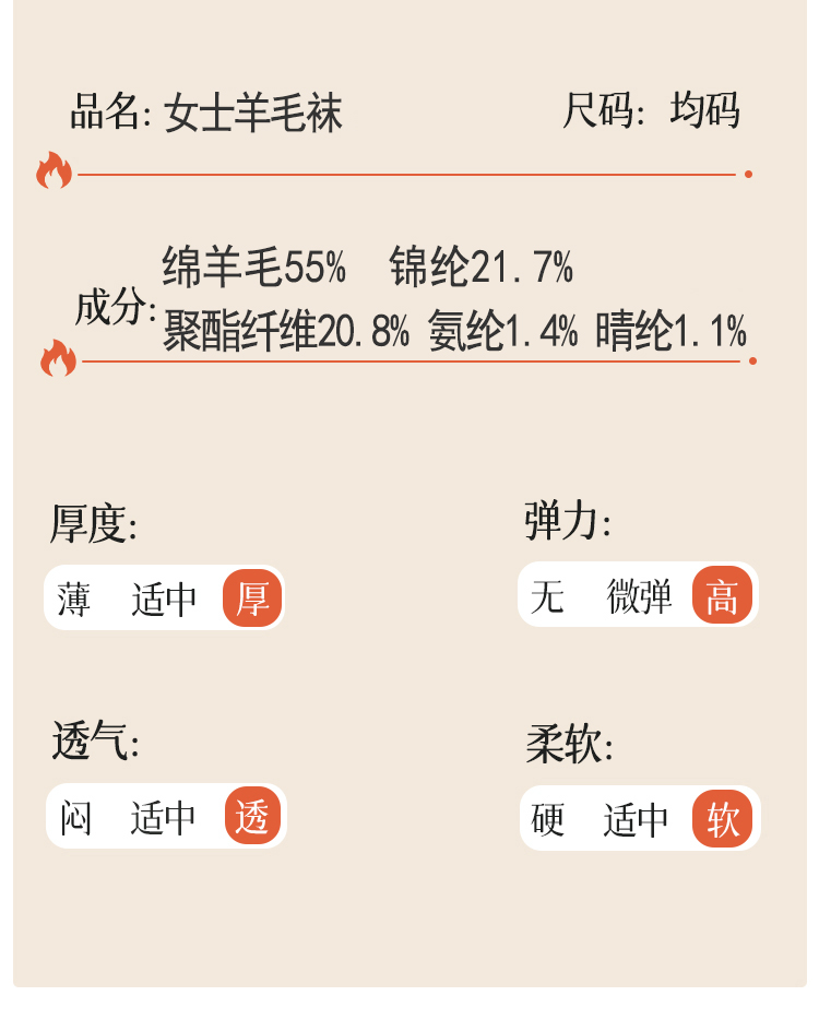 【秋冬持续蓄热 温暖舒适】猫人羊毛消臭袜 暖绒感发热纤维 袜头平整不磨脚趾