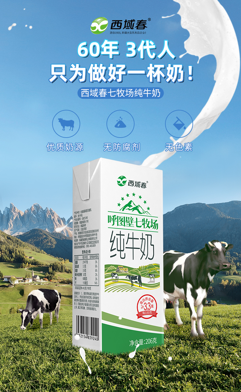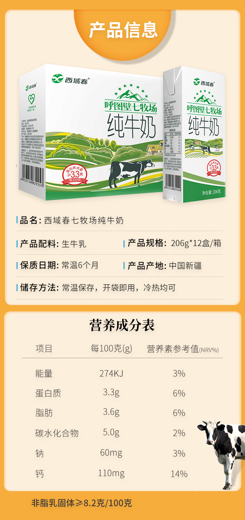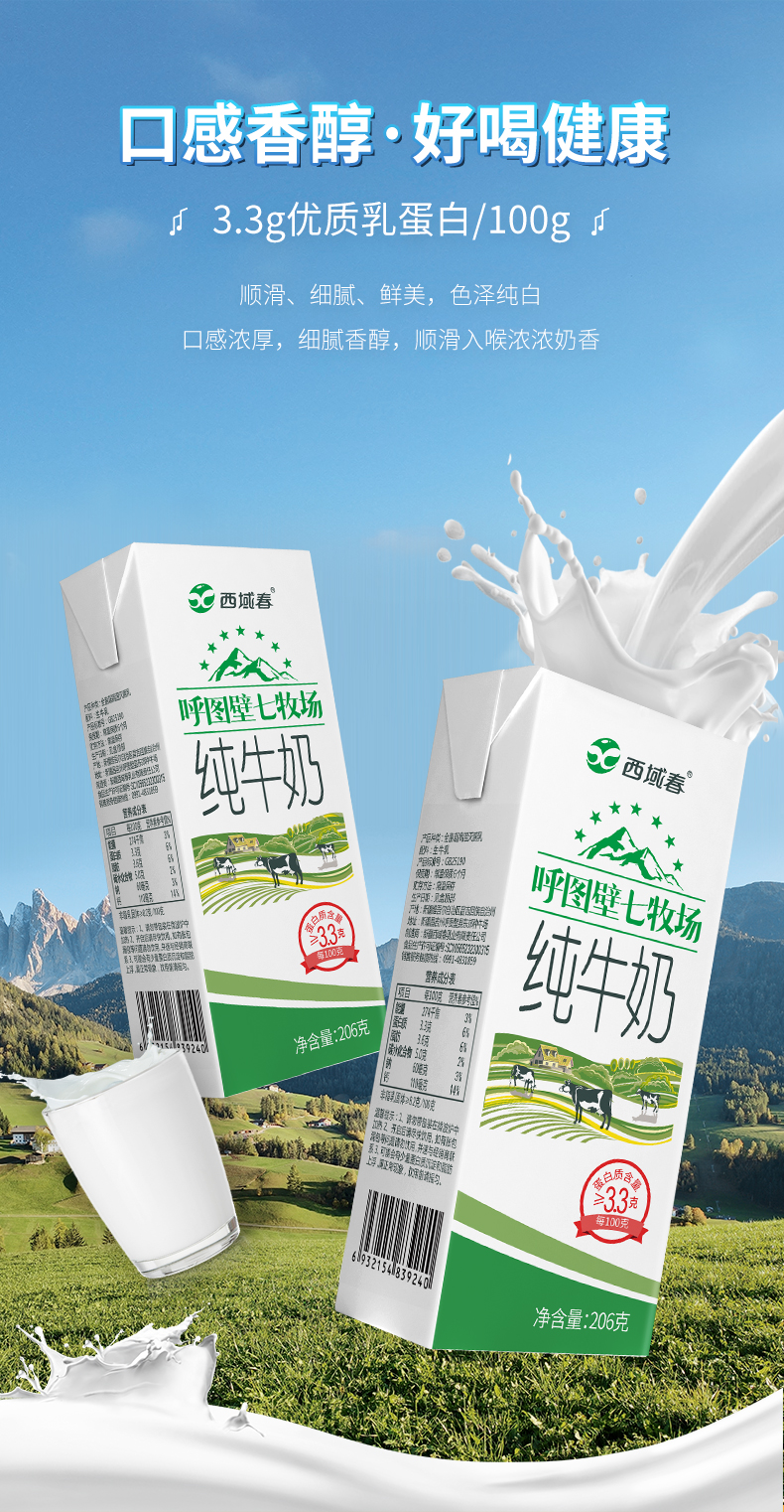 西域春七牧场牛奶 3.3克乳蛋白 纯奶