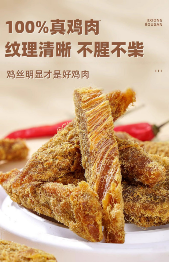 【拒绝过度添加🚫回归肉干本身的味道】 ✅配料简单,纯鸡胸肉制作 0淀粉非油炸吃着更健康!! 传统香料腌制好口感😄 越嚼越香丝丝分明有嚼劲