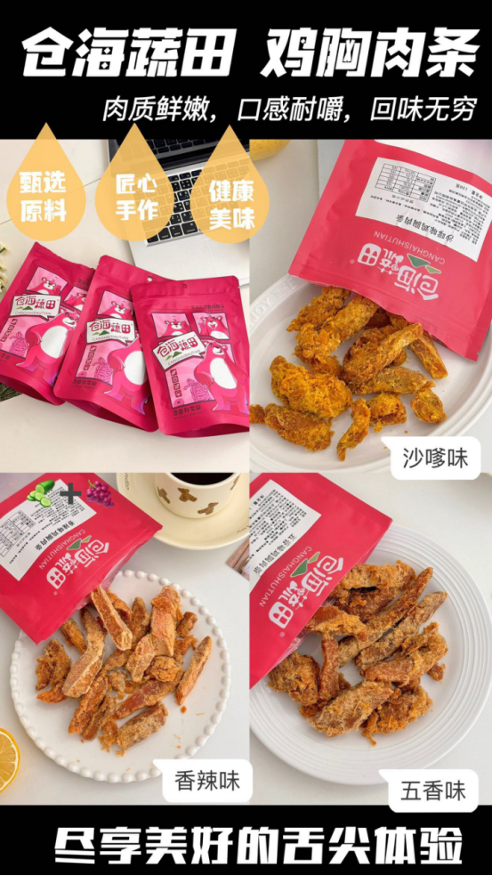 品牌直发 【仓海蔬田鸡胸肉条】追剧必备!越嚼越香。低脂低卡不长胖。自律女孩和健身人士都可以解馋的小零食 ✅超级耐嚼! 一根能吃半天🤣超扛饿,更重要的是超低脂肪量,减脂姐妹冲💪 ✅香辣味、沙嗲味、五香味三个口味🌶大大满足味蕾 ✅减脂辅助器!!!适合追剧嘴馋吃上几根!越嚼越香~巨上头!💥 ✅只用原切鸡胸肉🐓拒绝拼接肉‼️