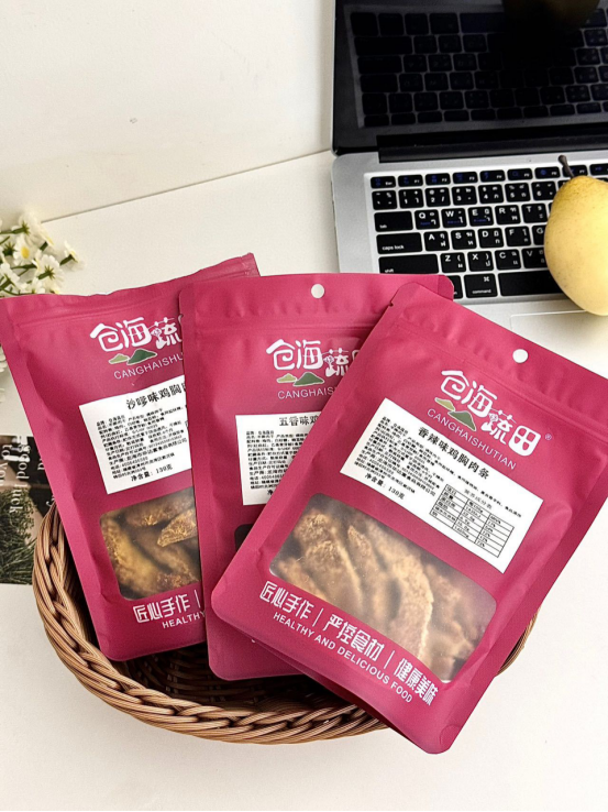 鸡胸肉的热量也几乎是所有肉类中最低的 碳水化合物含量几乎为零 另外,鸡胸肉饱腹感强,还含有大量铁元素 有利于保持良好的新陈代谢 不论增肌还是减脂,都少不了它 然而,传统的鸡胸肉烹饪方法往往过于单一 寡淡无味,口感干柴 许多人吃减脂餐里的鸡胸肉都抱怨味如嚼蜡 【仓海蔬田 鸡胸肉条】 既是好吃的鸡胸肉,又吃得健康!