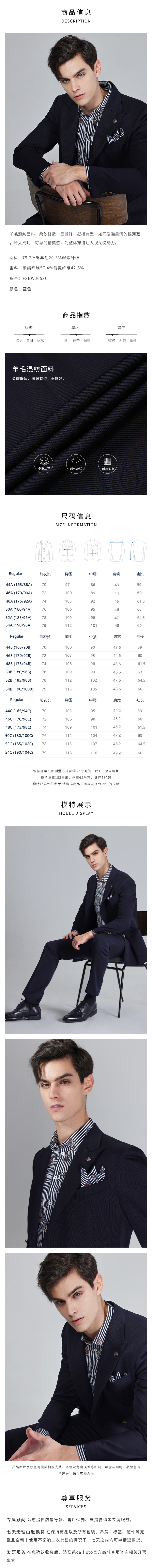 callisto银河蓝绵羊毛混纺西服 FSBWJ053C BL