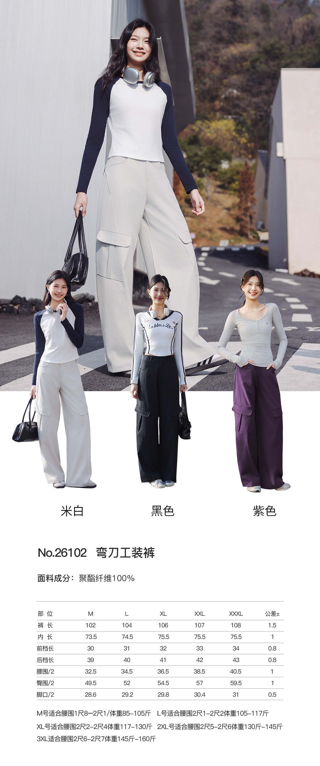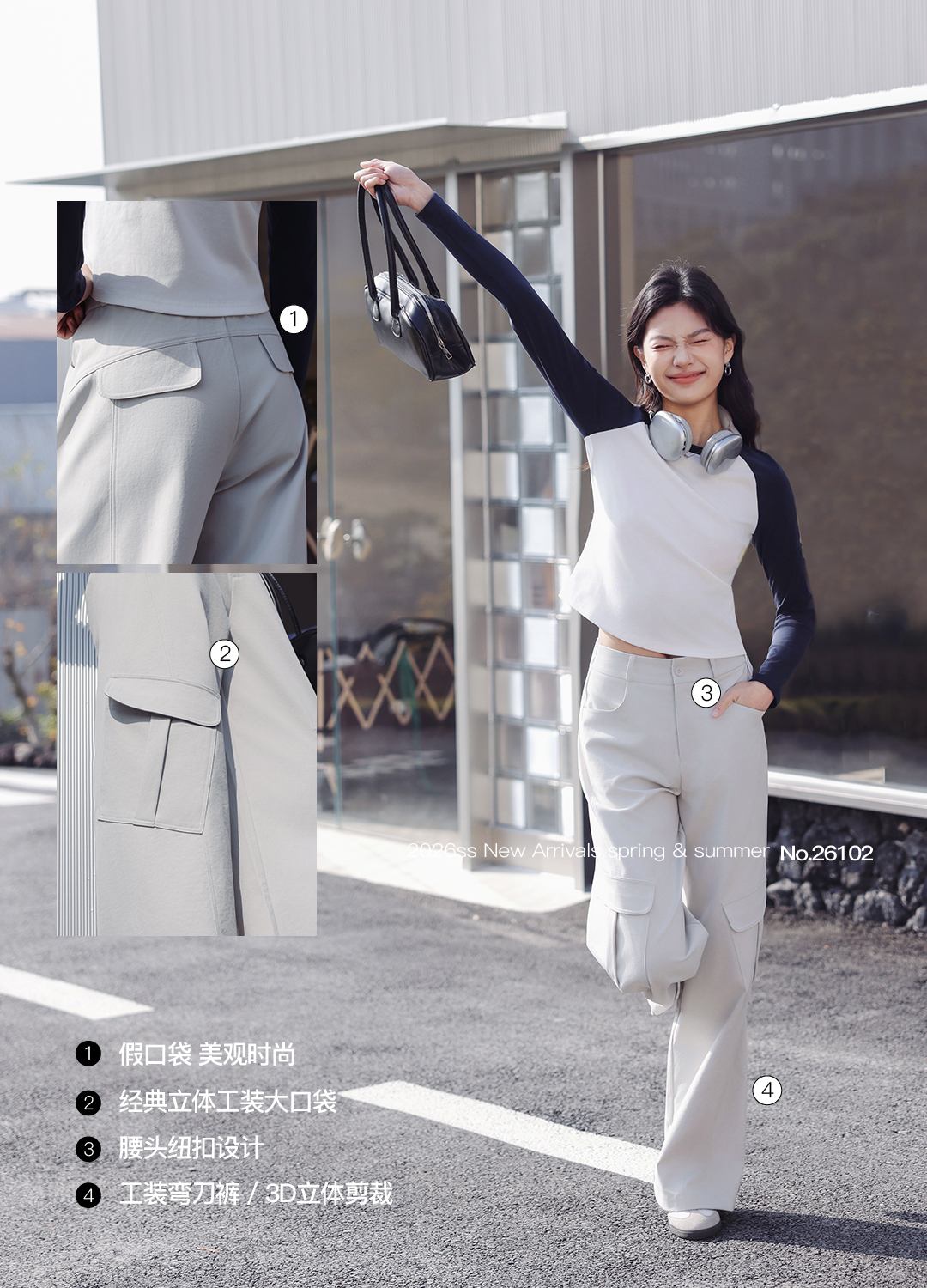 【SAKURA樱花·生态棉弯刀工装裤26102】亲肤生态棉,大口袋工装裤,休闲街头风