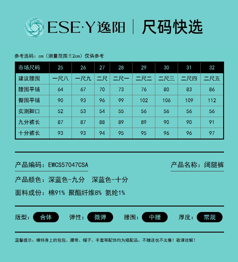 【初秋-笔直阔腿裤】逸阳不易掉色宽松显瘦九分十分阔腿裤子7047