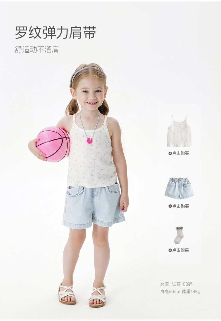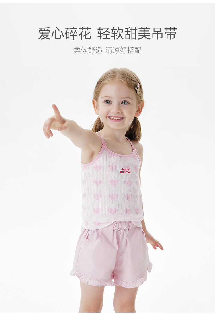马克珍妮女童甜美爱心碎花吊带儿童背心上衣2025年夏装新款550712
