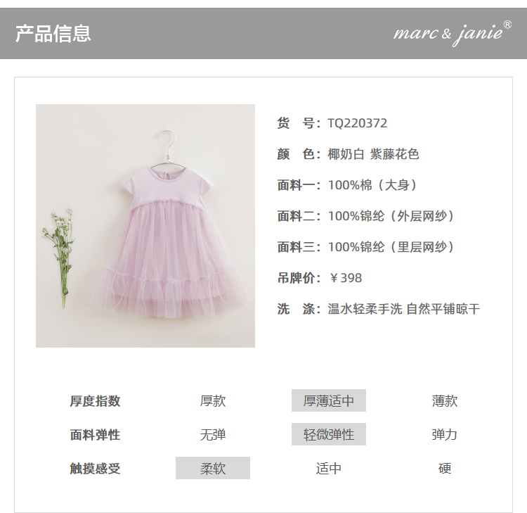 【马克珍妮 芦芙系列】夏装新款 女童短袖网纱连衣裙220372