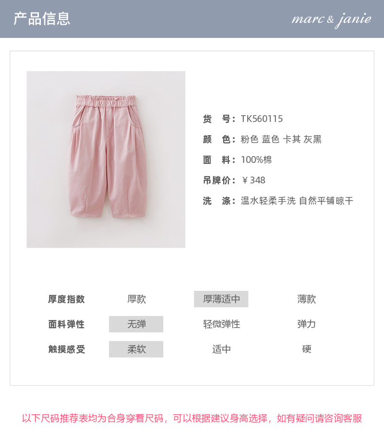 马克珍妮云柔匹马棉女童压褶萝卜裤宝宝裤子2026年春装新款560115