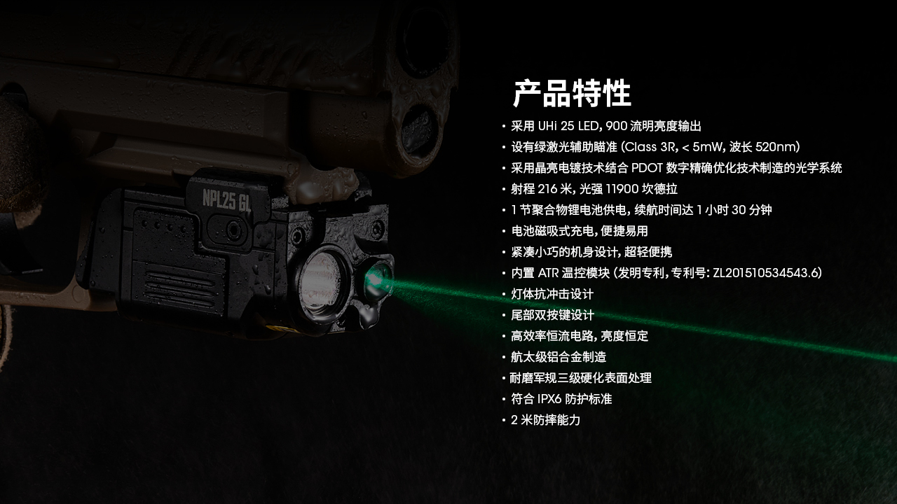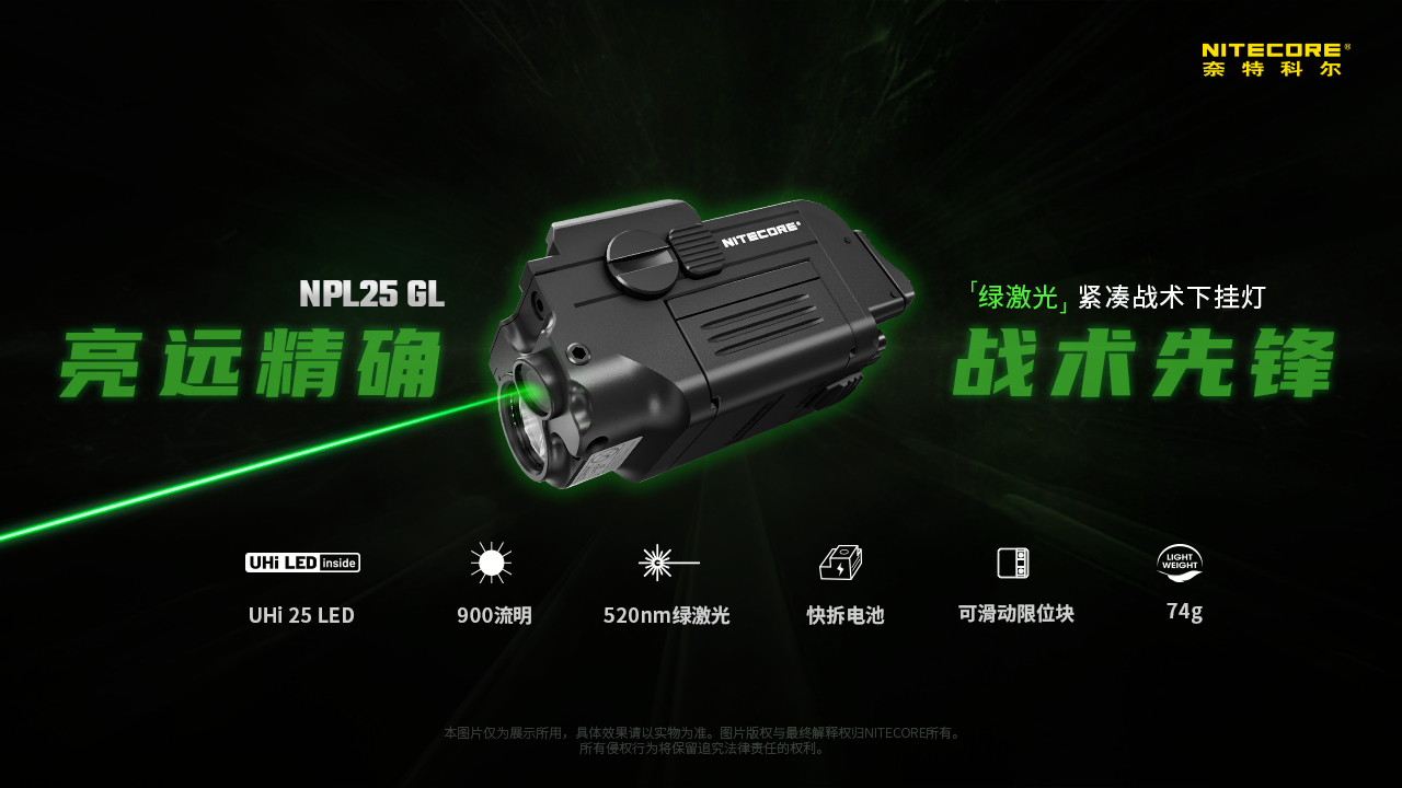 NPL25 GL绿镭射战术下挂灯便携户外照明灯900流明手电