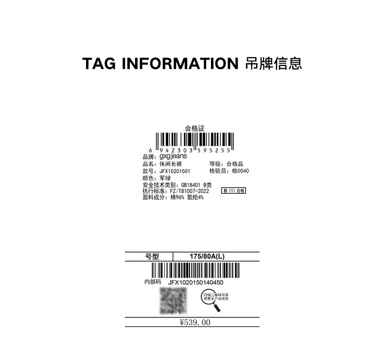 gxg.jeans男装春季经典款休闲长裤JFX10201501