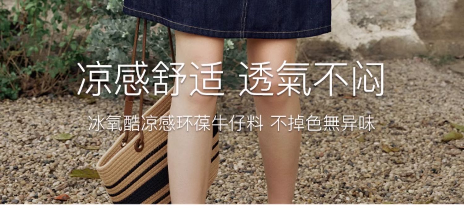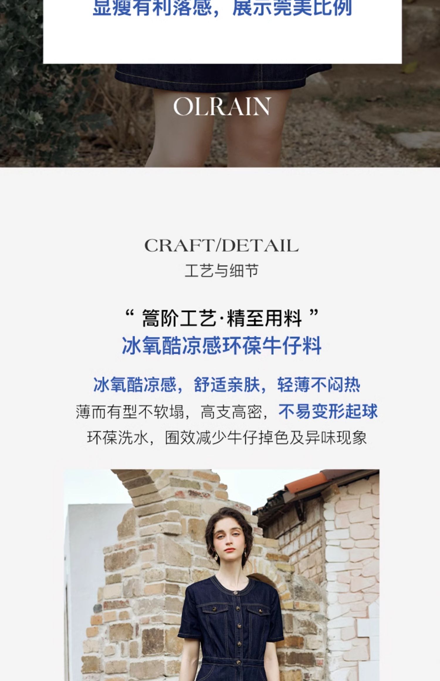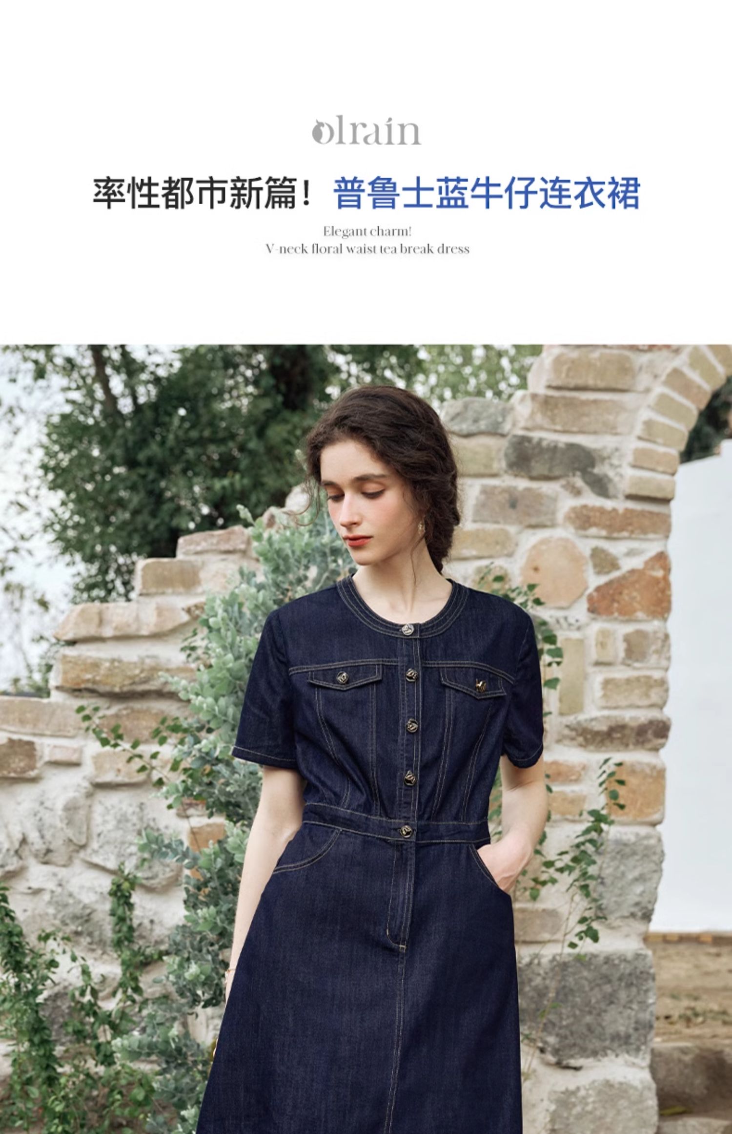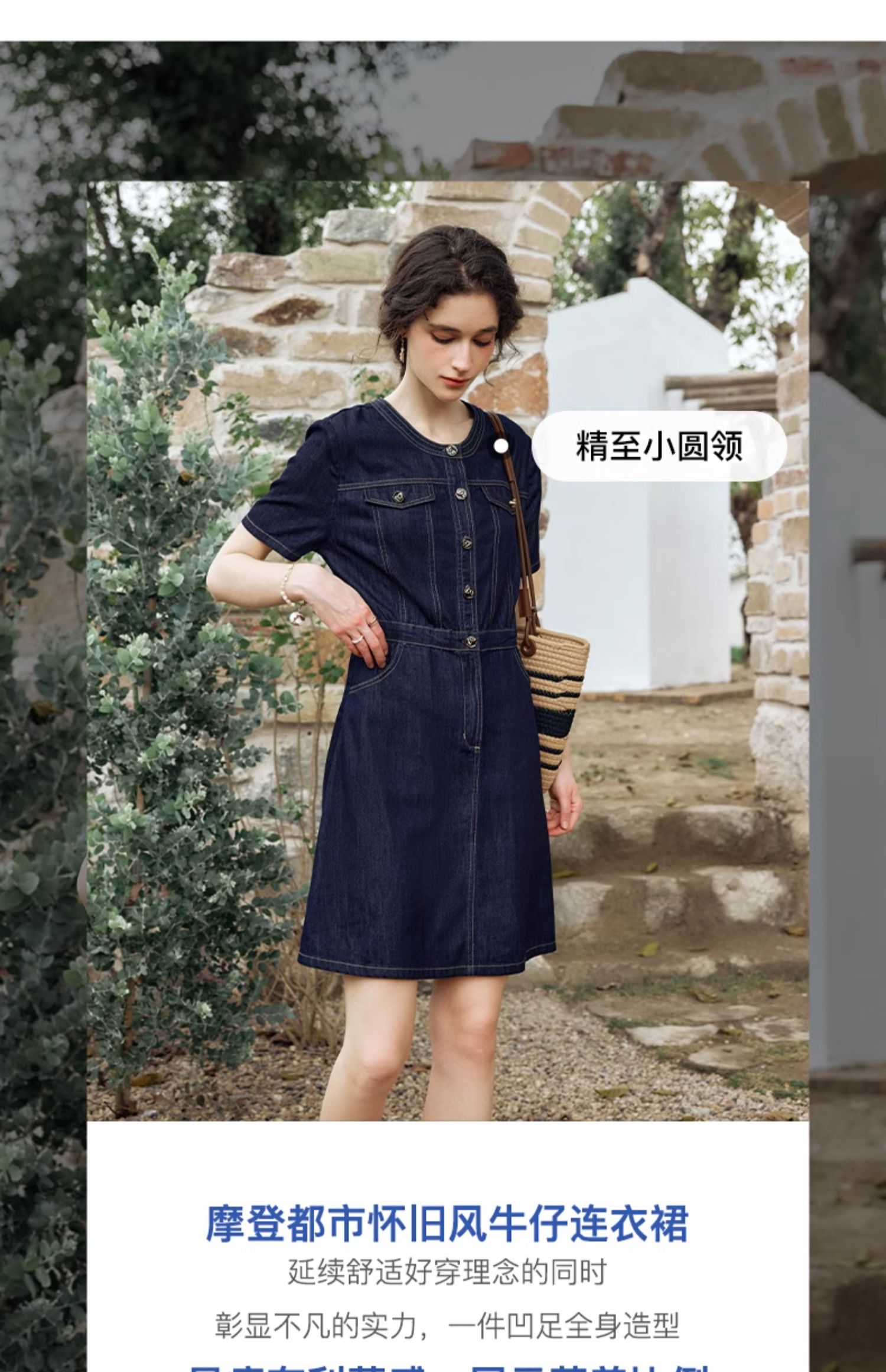 OLrain欧芮儿法式复古牛仔连衣裙女夏2024新款气质独特圆领A字短裙薄款