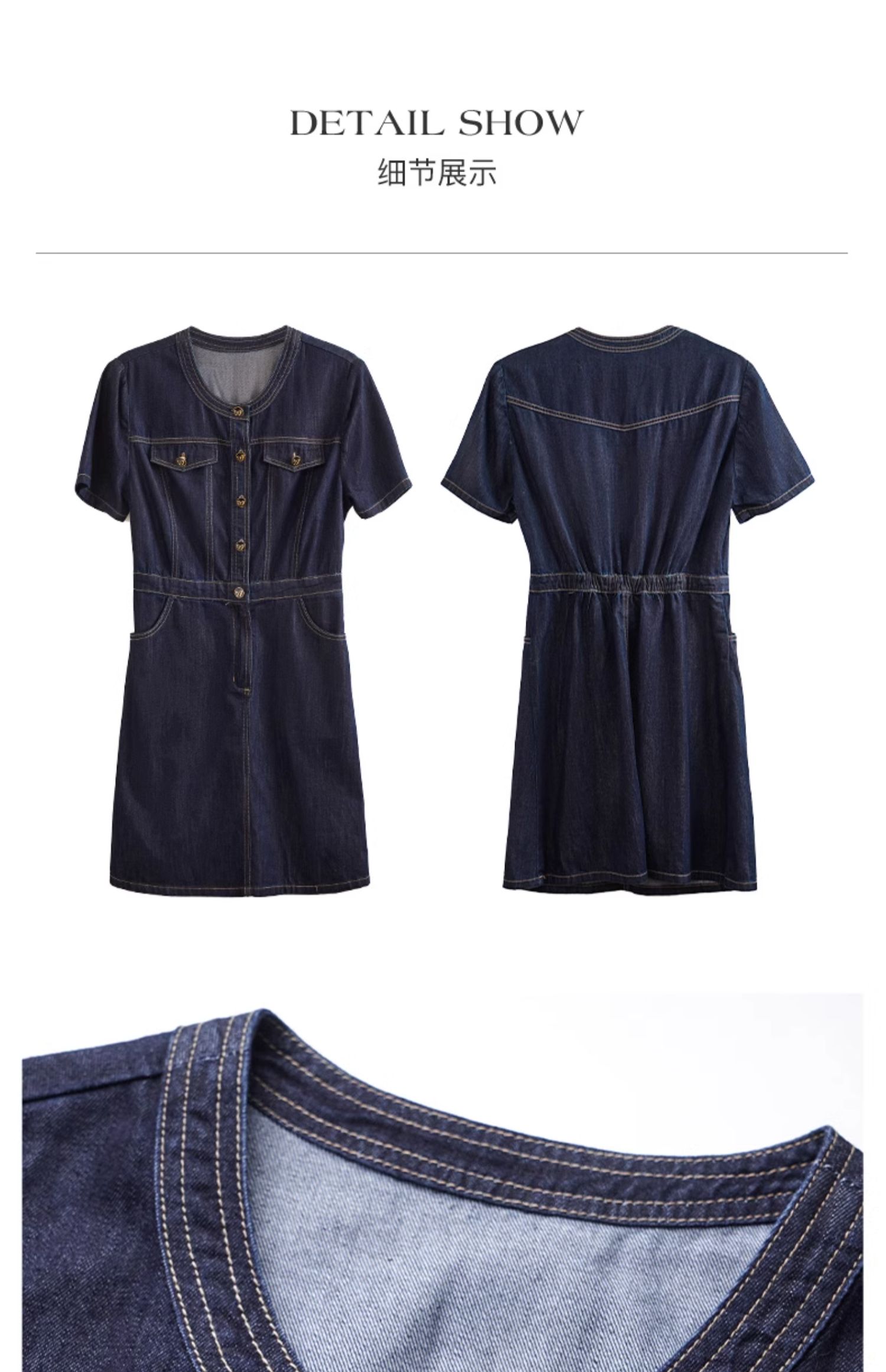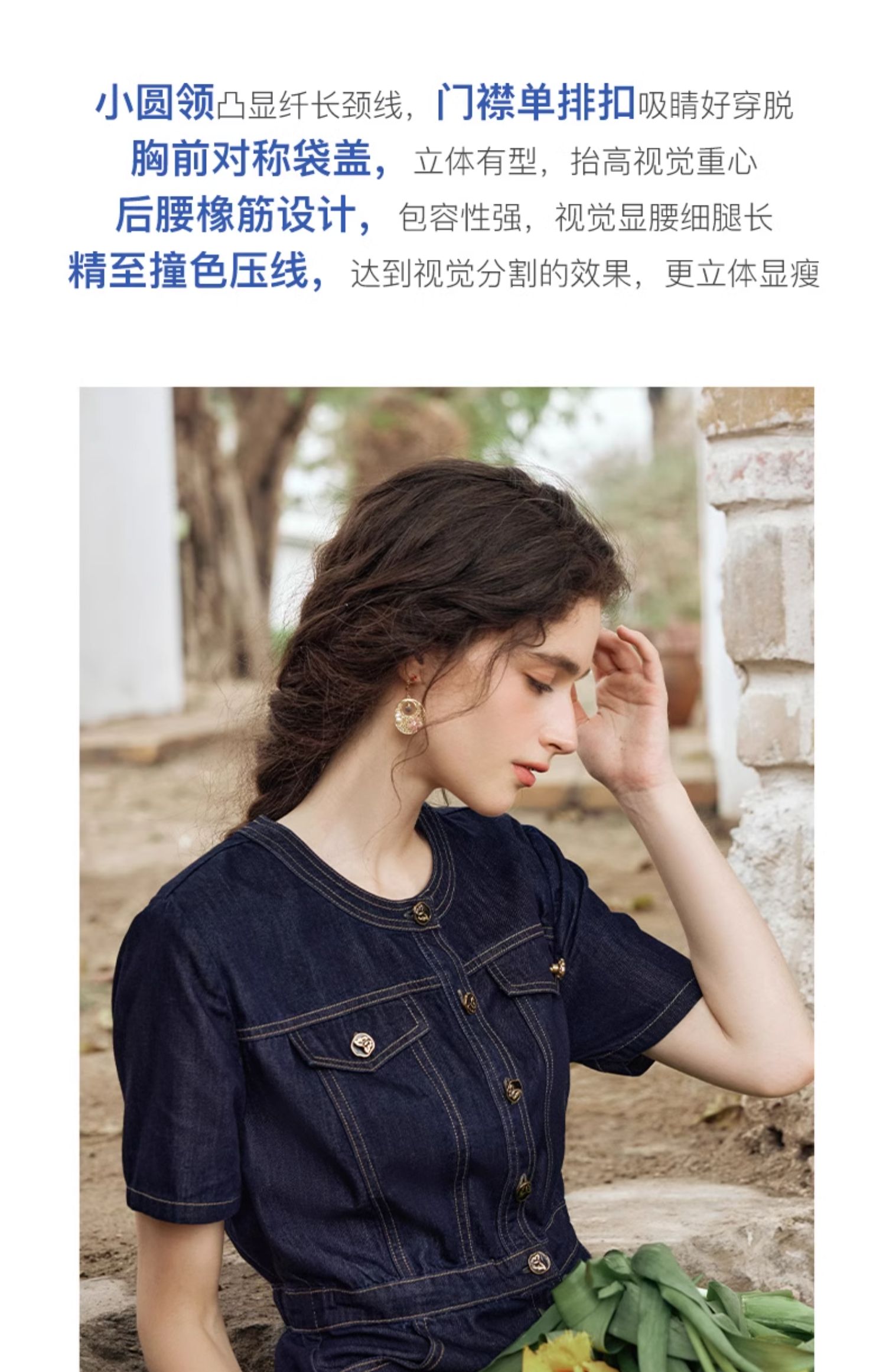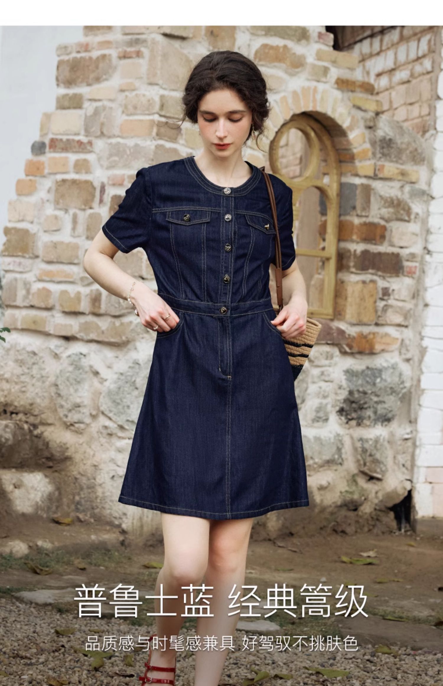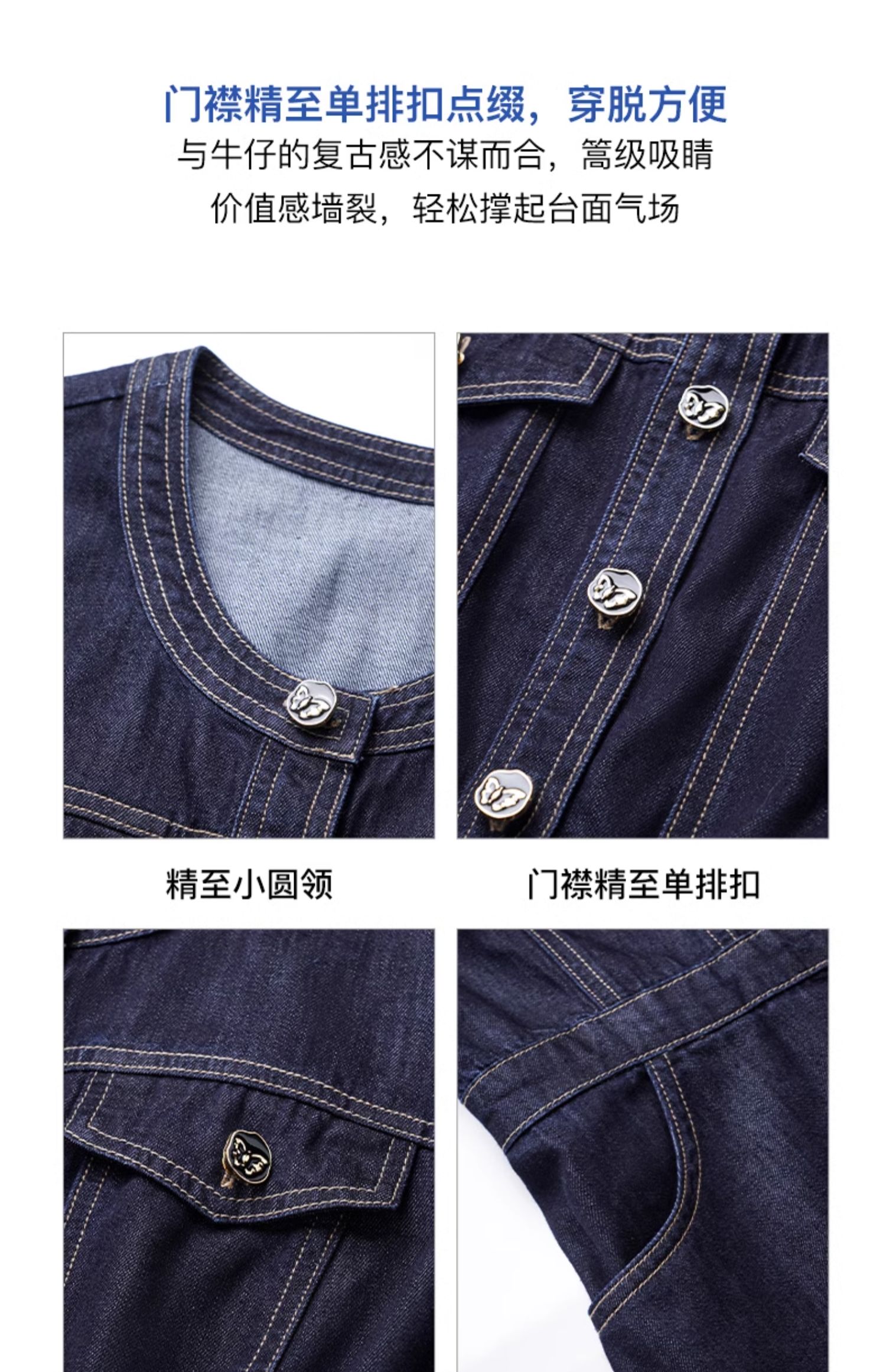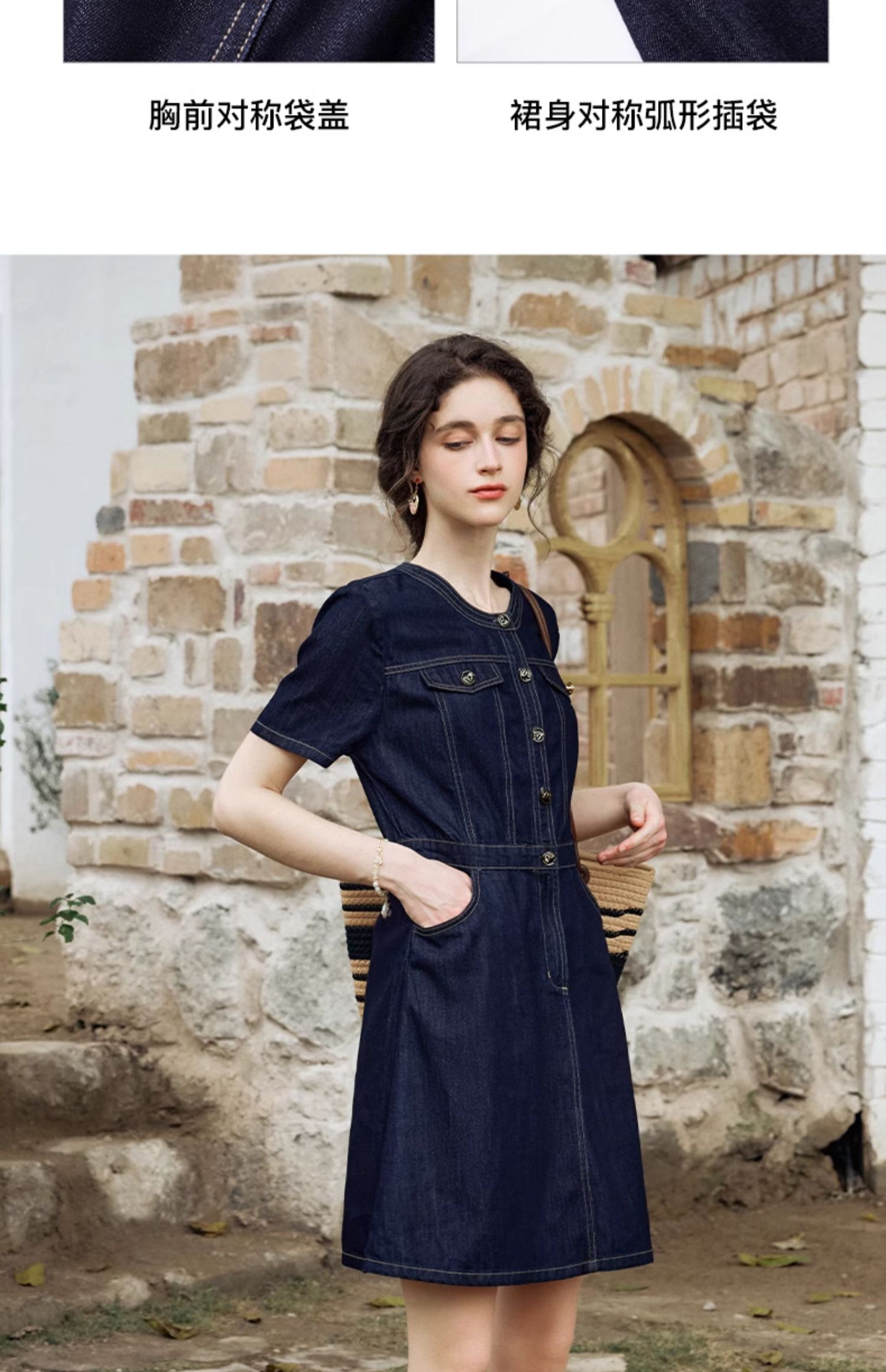 OLrain欧芮儿法式复古牛仔连衣裙女夏2024新款气质独特圆领A字短裙薄款