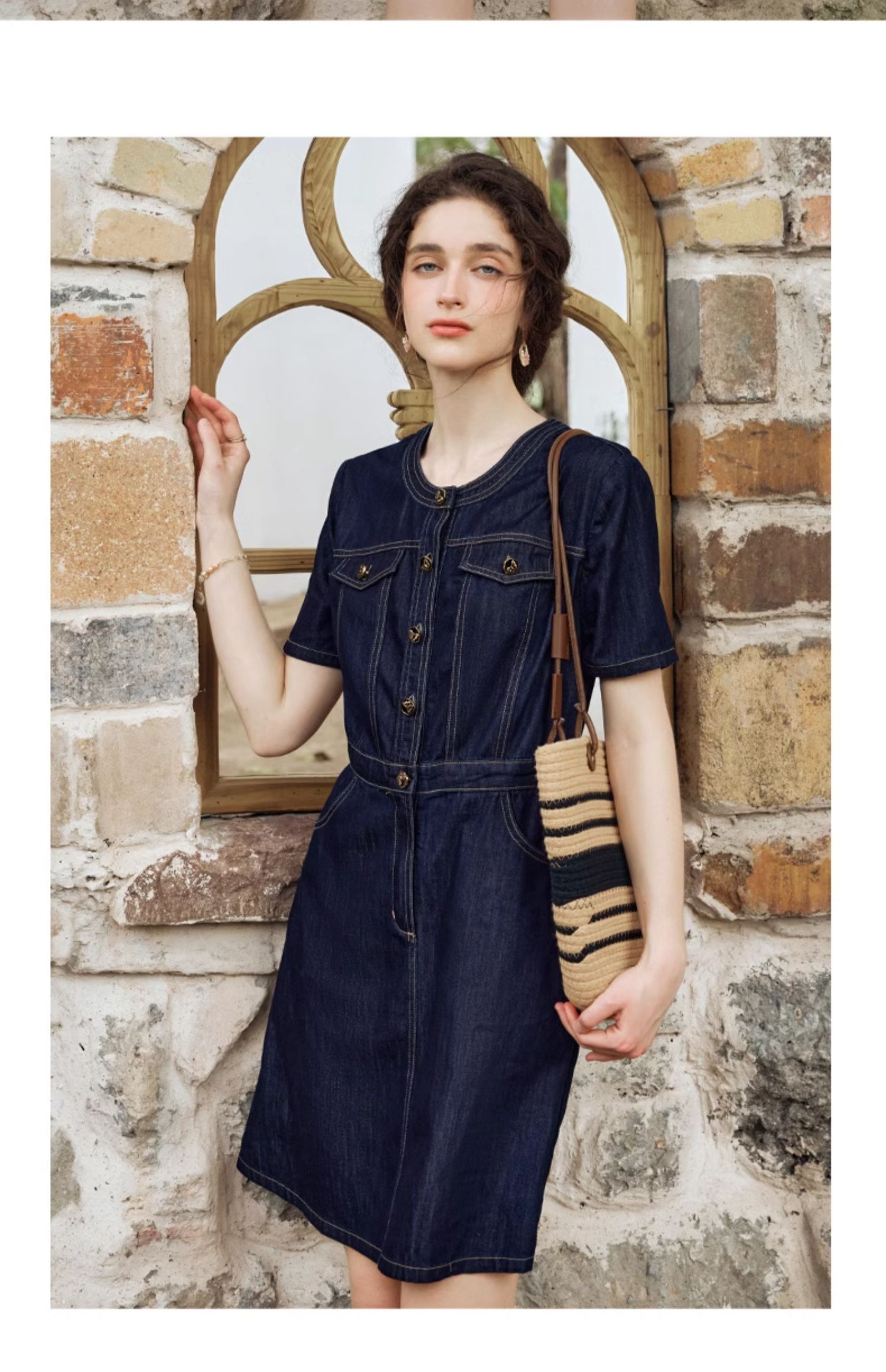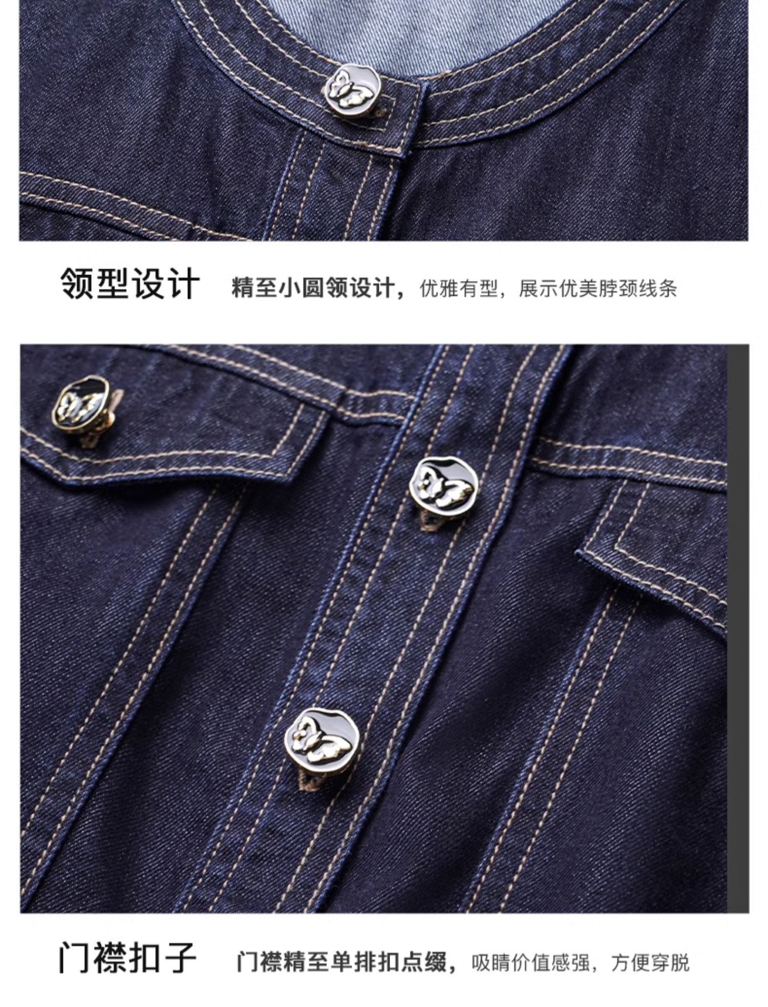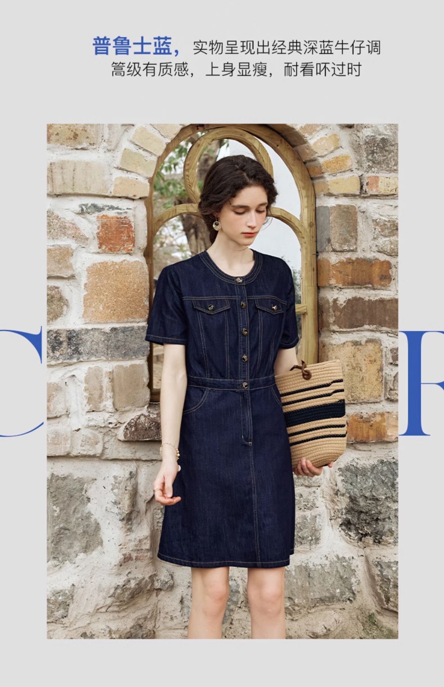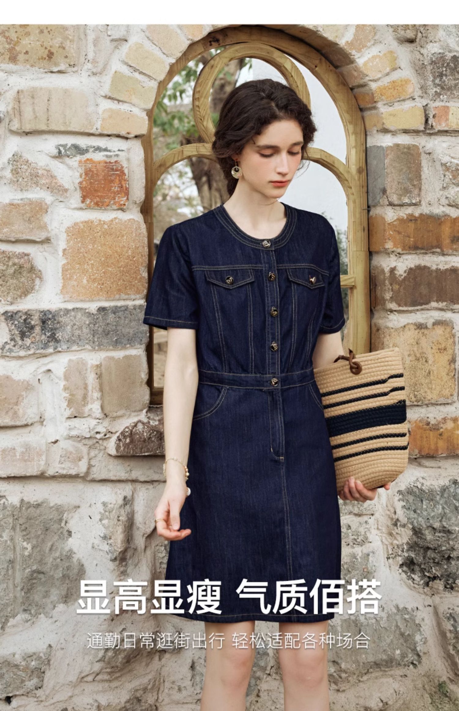 OLrain欧芮儿法式复古牛仔连衣裙女夏2024新款气质独特圆领A字短裙薄款