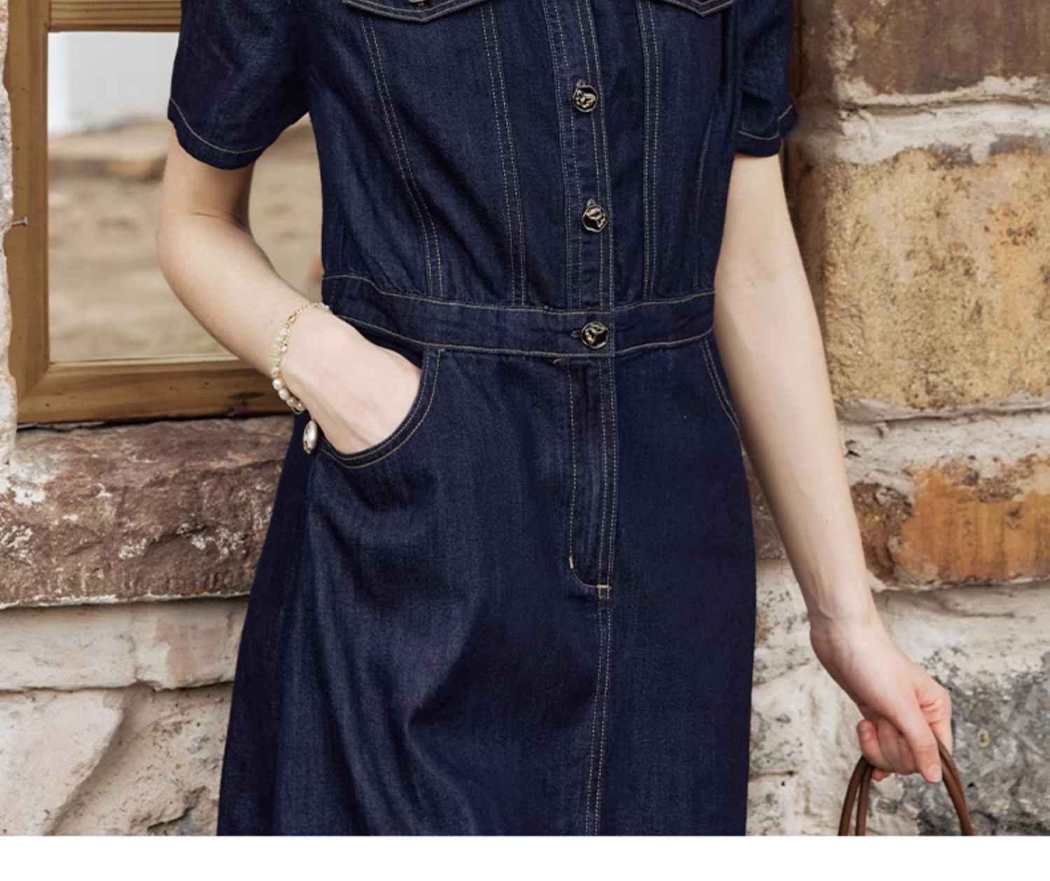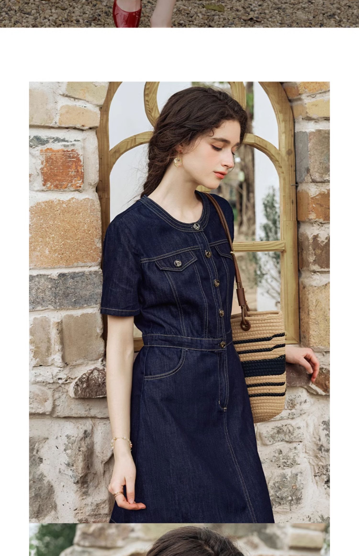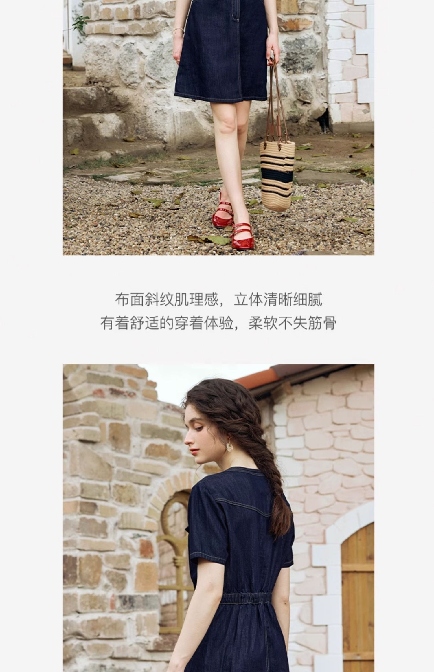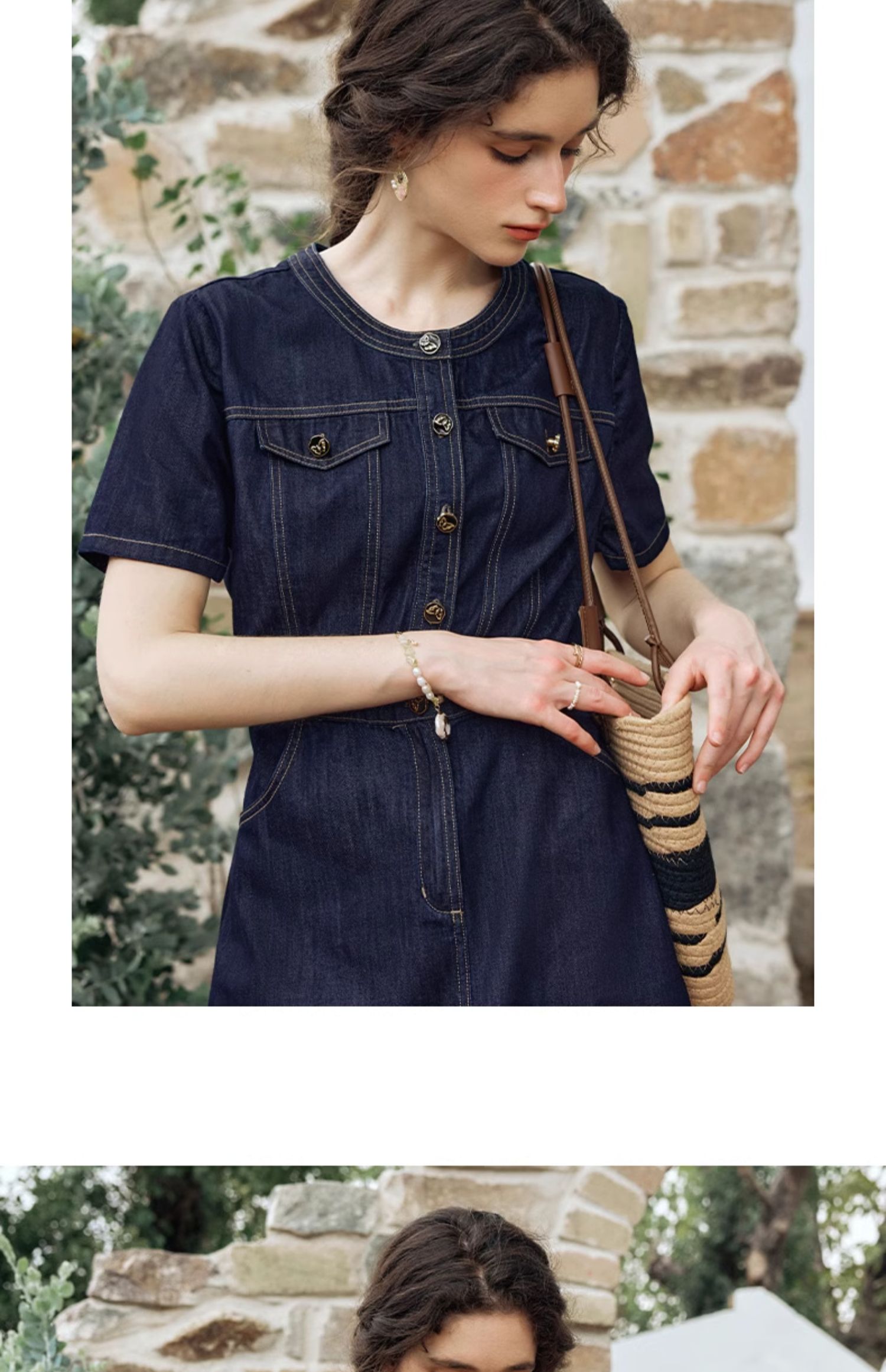 OLrain欧芮儿法式复古牛仔连衣裙女夏2024新款气质独特圆领A字短裙薄款