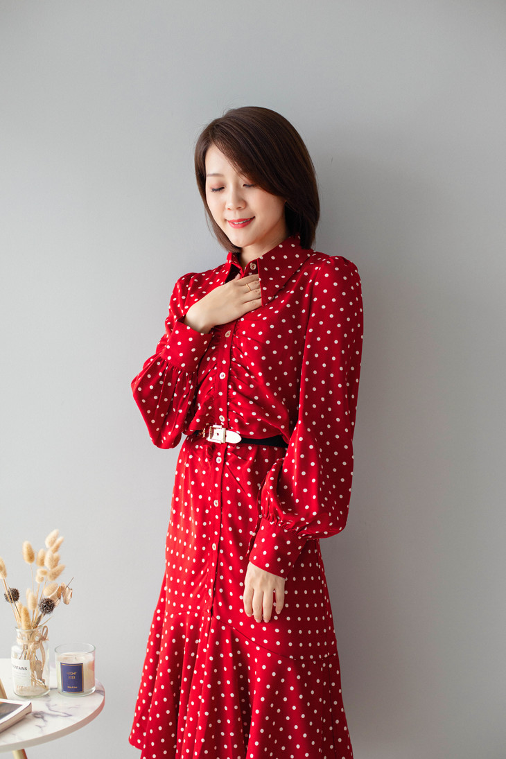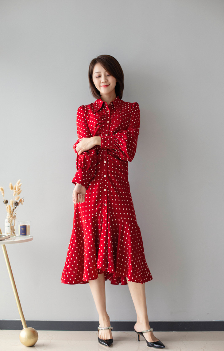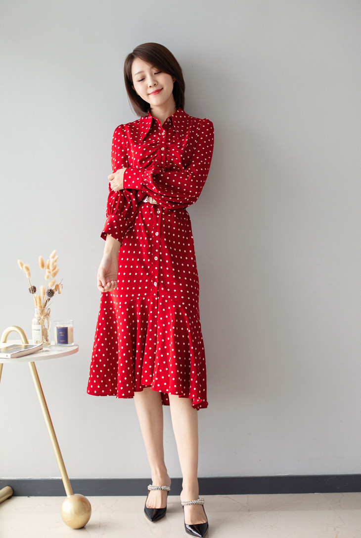 红色波点鱼尾裙