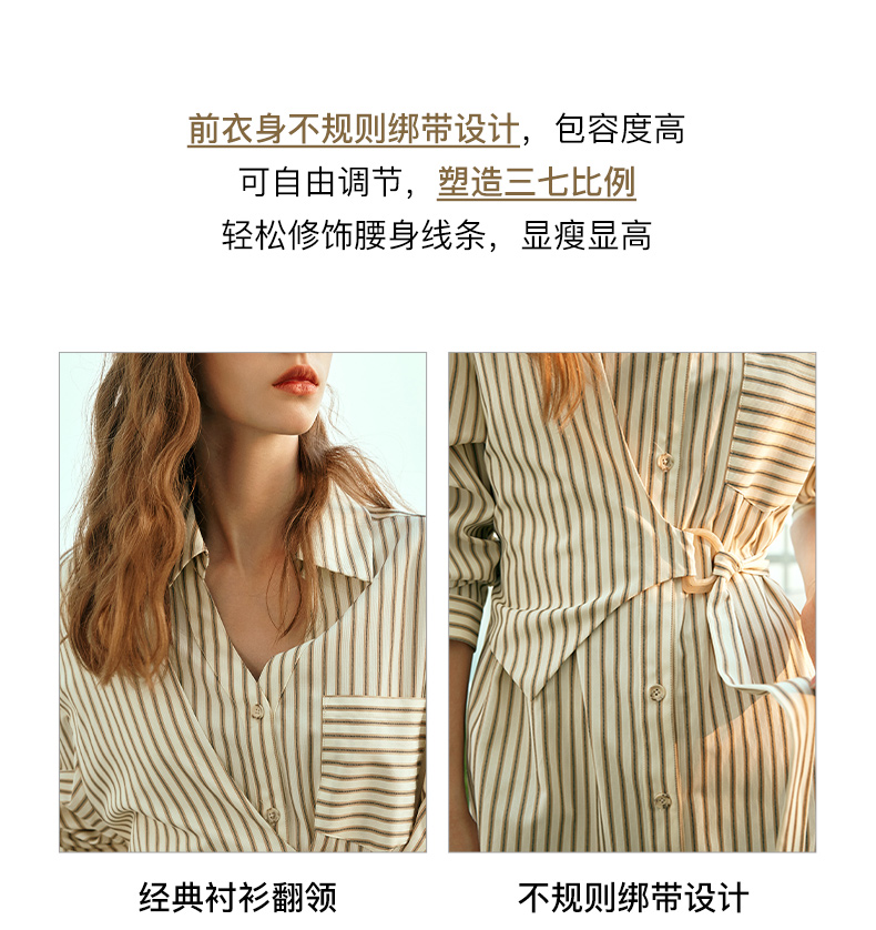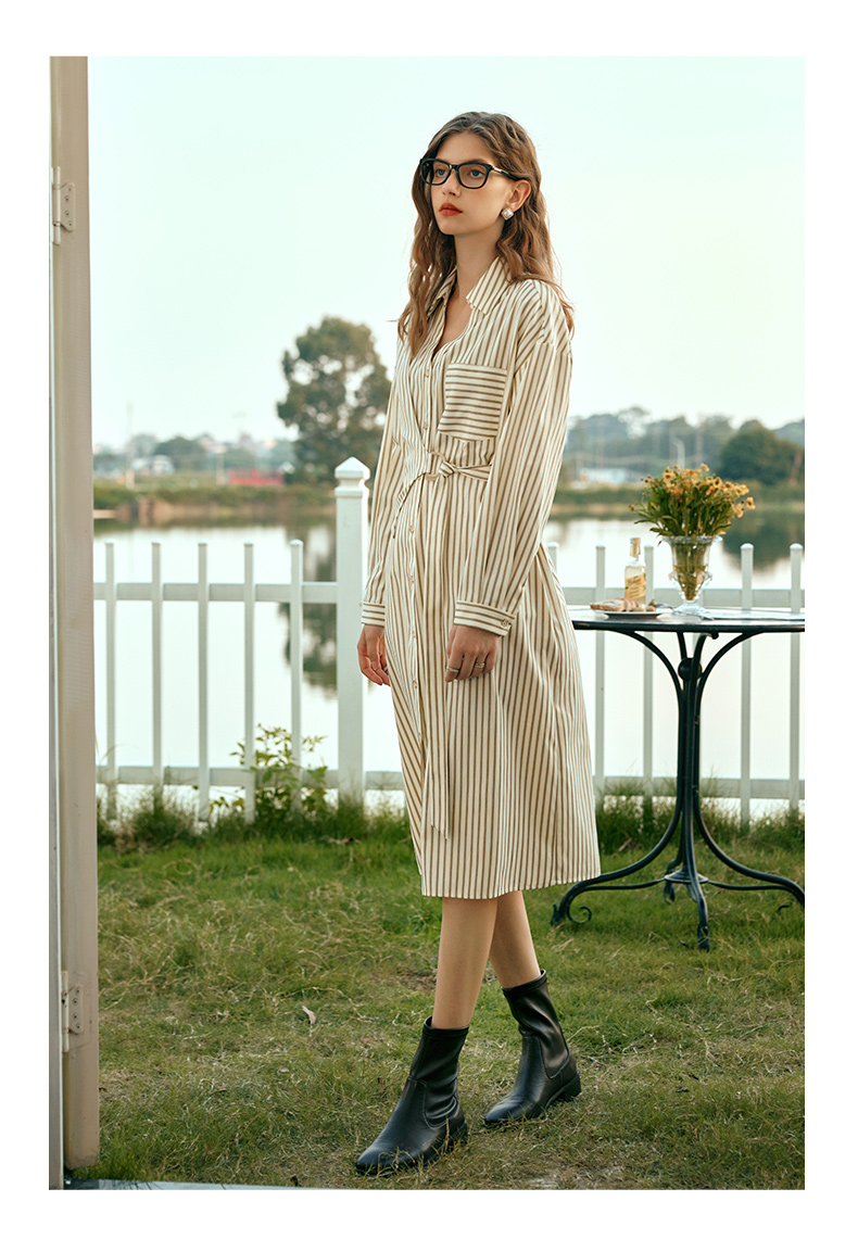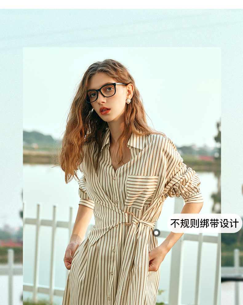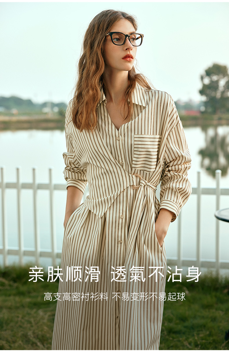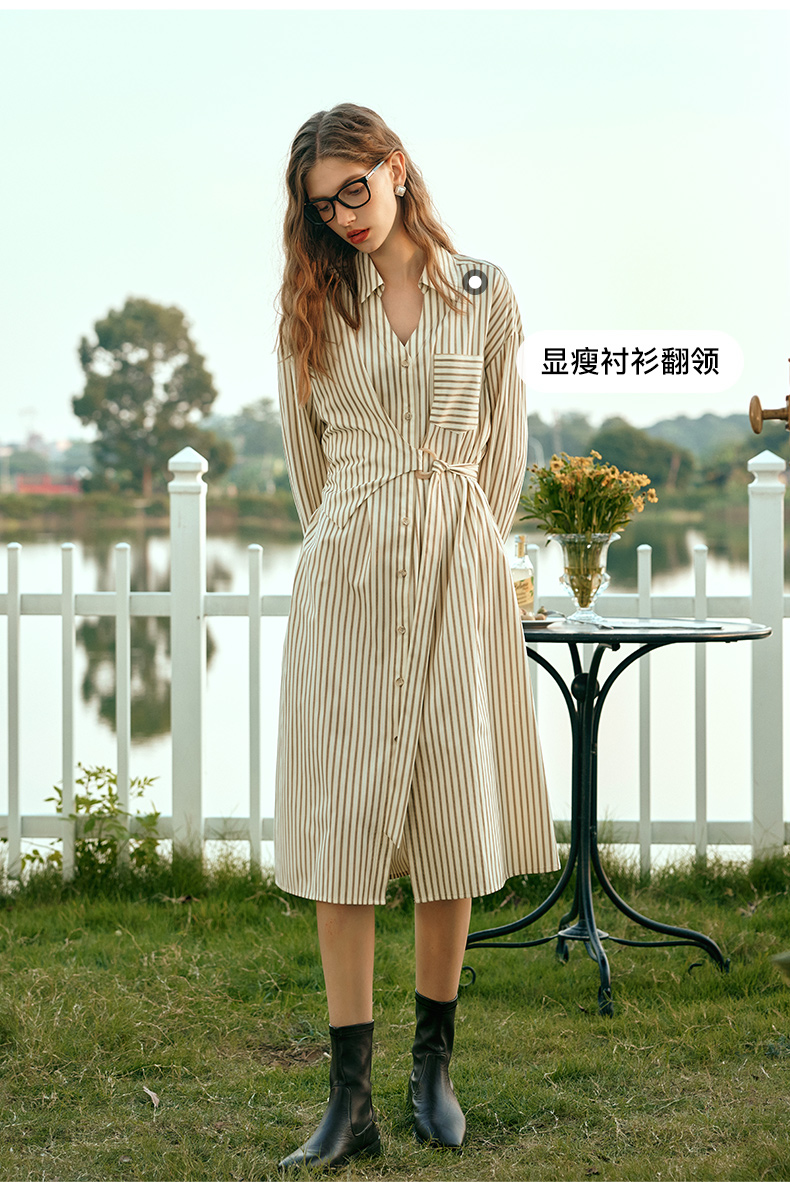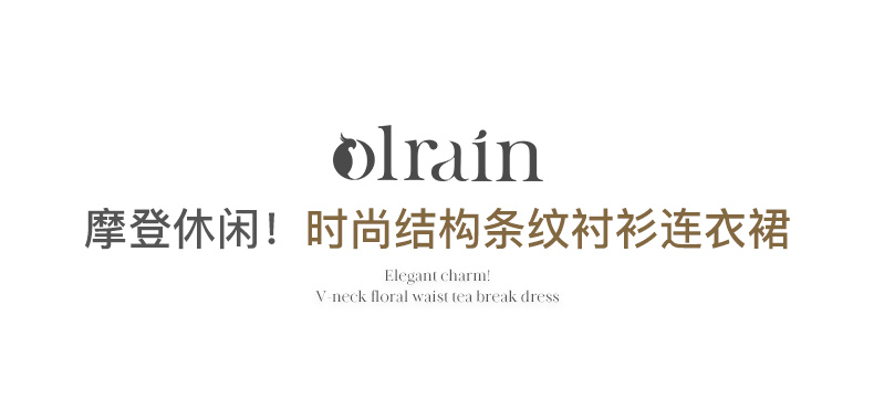 OLrain欧芮儿条纹衬衫连衣裙女早春2024年新款时尚设计感长裙