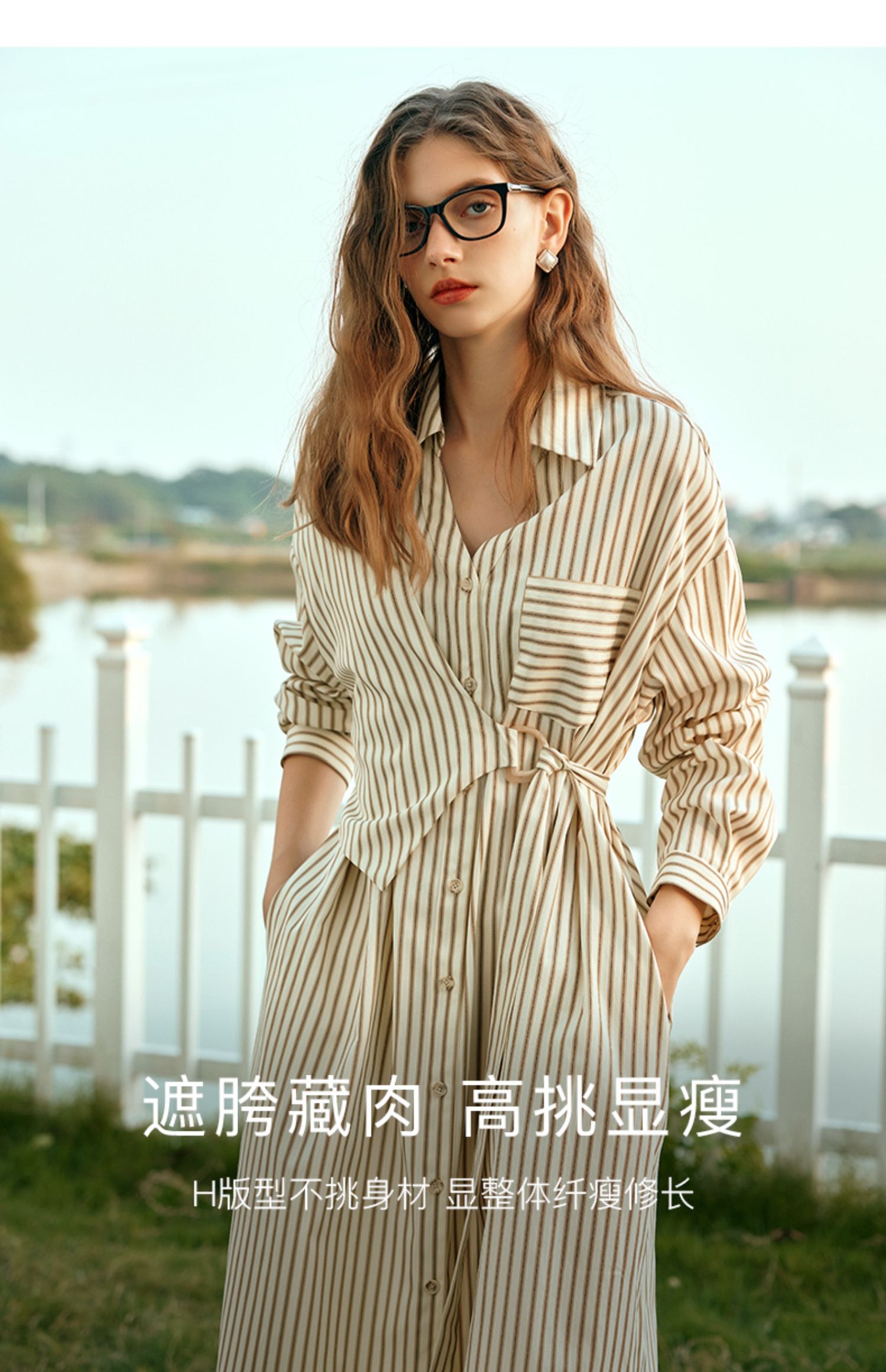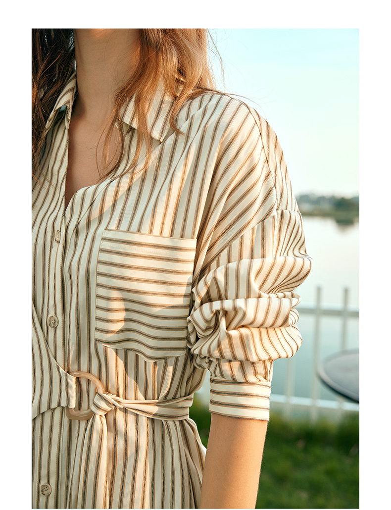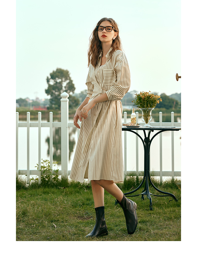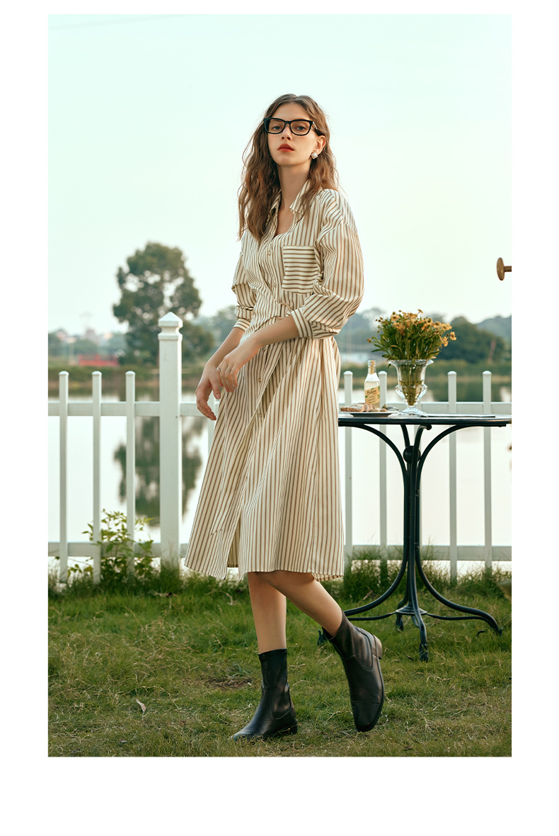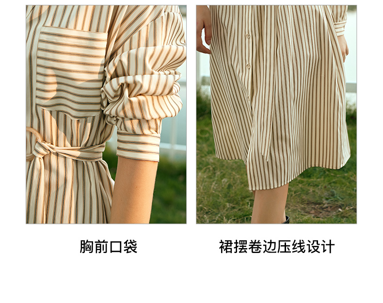 OLrain欧芮儿条纹衬衫连衣裙女早春2024年新款时尚设计感长裙