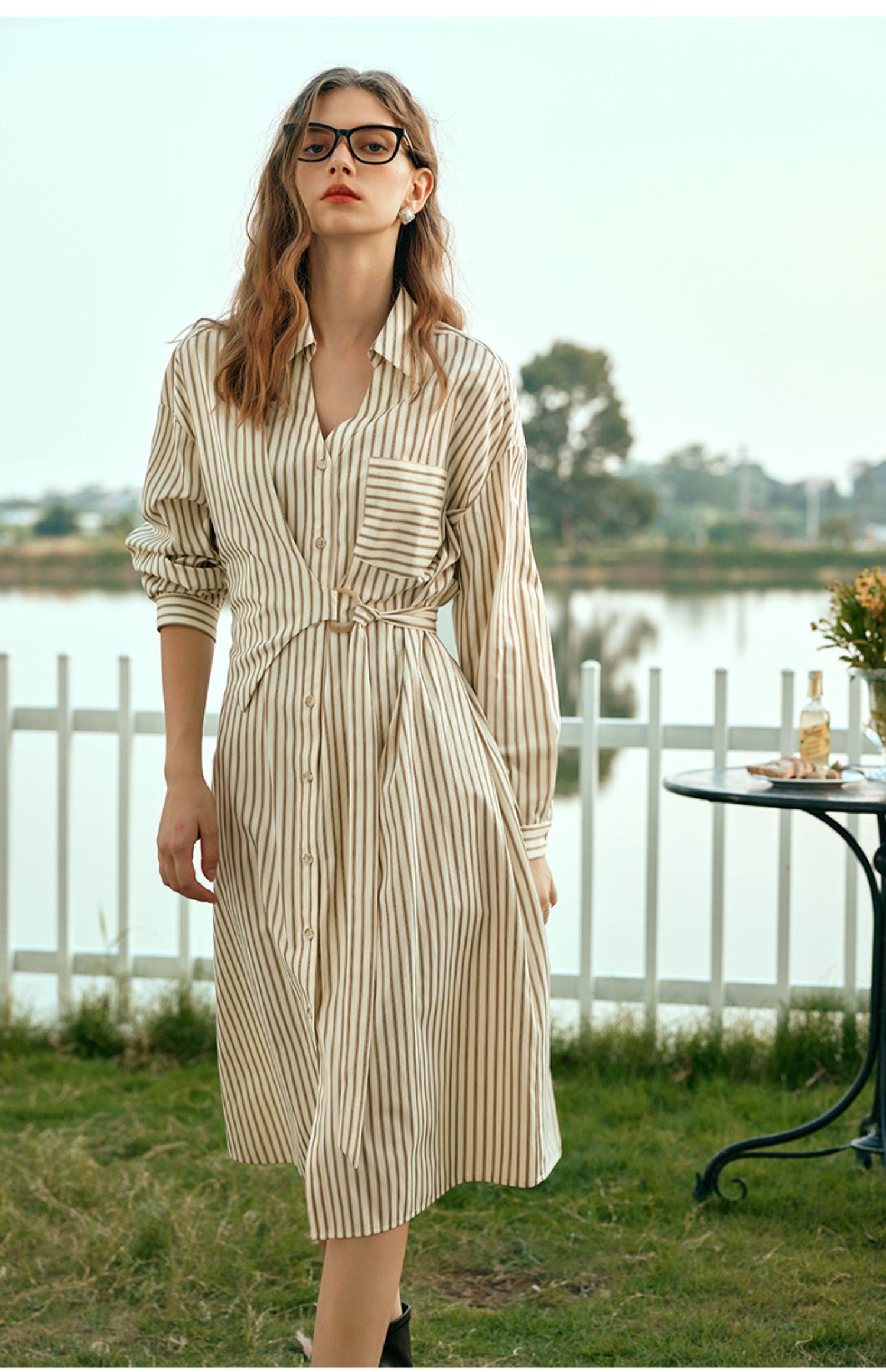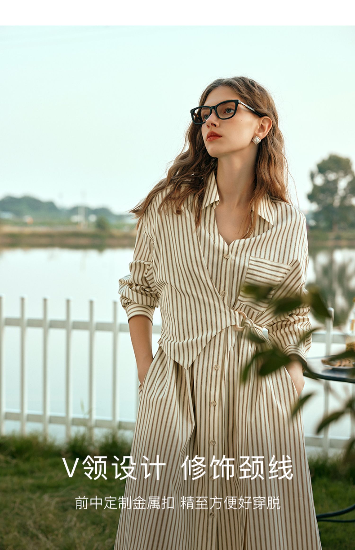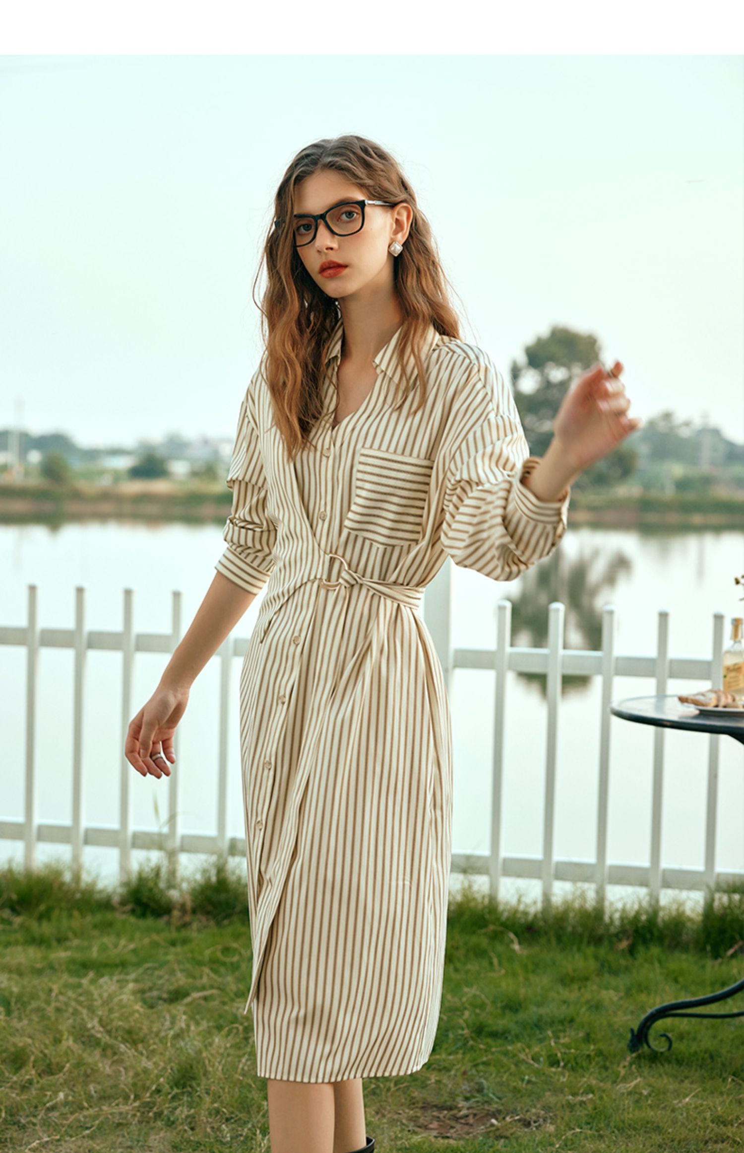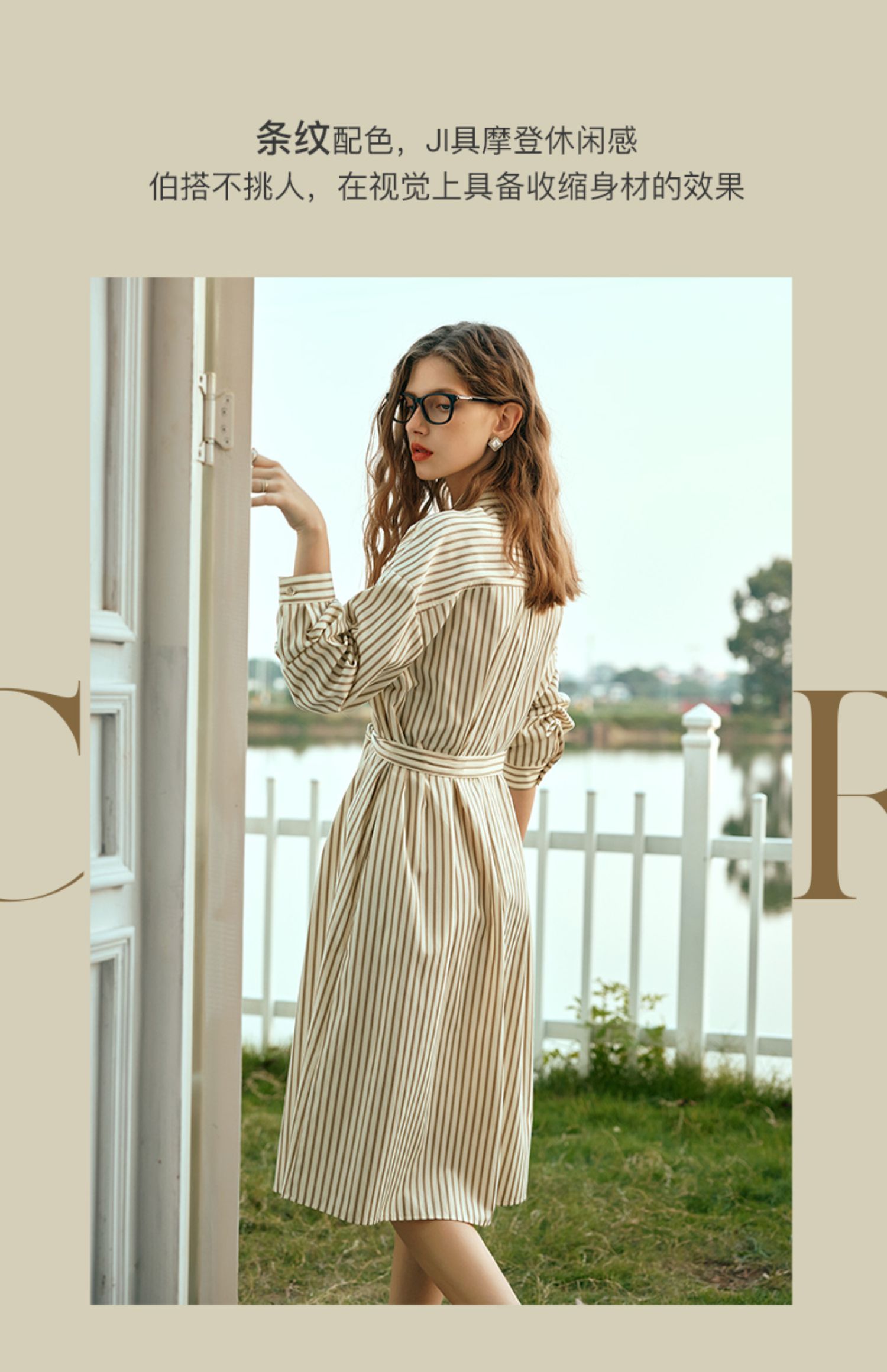 OLrain欧芮儿条纹衬衫连衣裙女早春2024年新款时尚设计感长裙