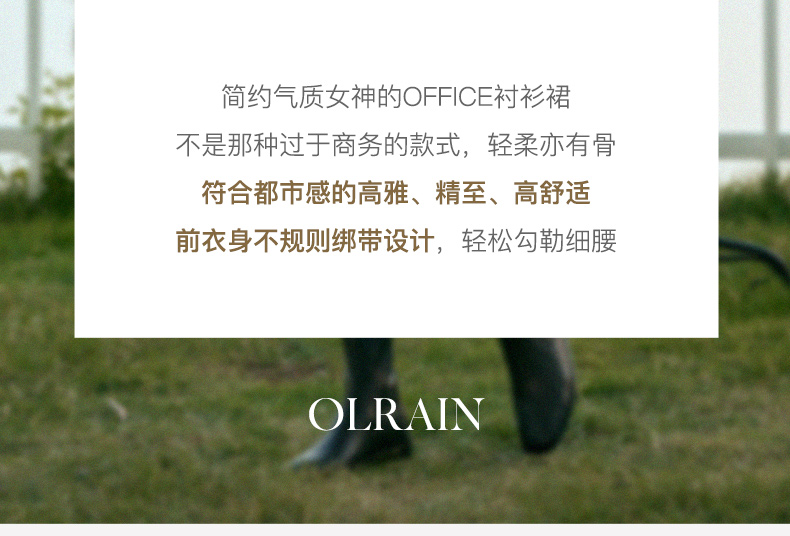 - “精致”是欧芮儿olrain品牌文化的核心,欧芮儿认为,精致的女人,不但要外在动人,更要内在迷人,内外兼修,有魅力、有气质、有内涵,自信而不自傲,优雅而不矫揉,自有万种风情而不轻浮,更不故作矜持。