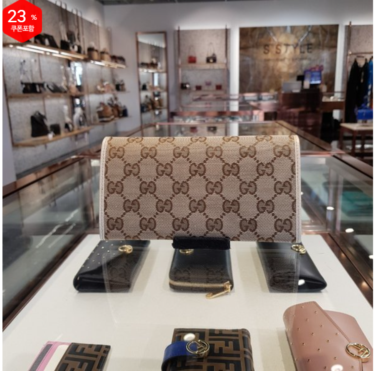 奥莱Gucci 帆布金属条徽标长款钱包(象牙色)244946 KY9IG 9773JPY带授权招加盟代理
