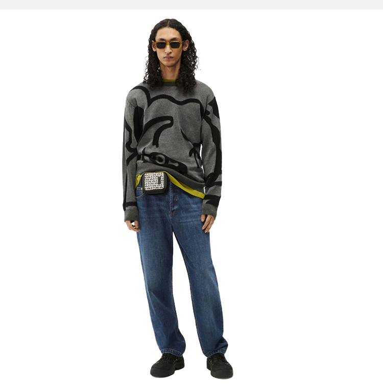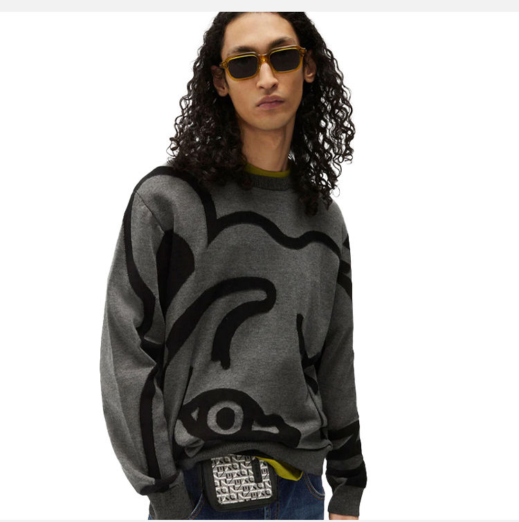 KENZO 高田贤三 男士涂鸦徽标印花棉质长袖针织衫 灰色 FB55 PU586 3TC 98