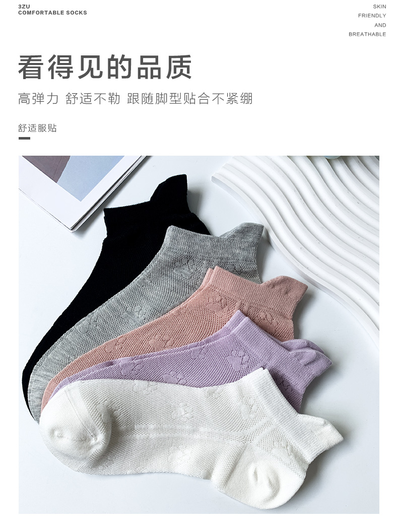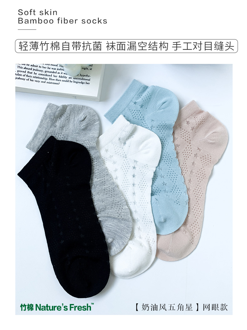 足装秀24新品夏季女士船袜轻薄竹棉抗菌吸湿网眼镂空女士短袜子