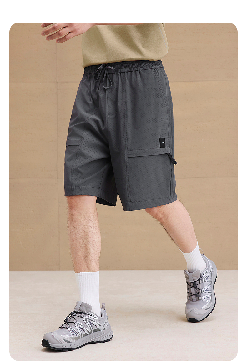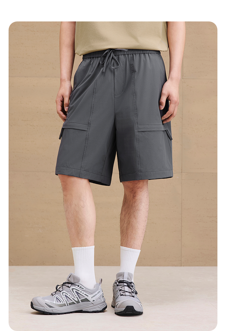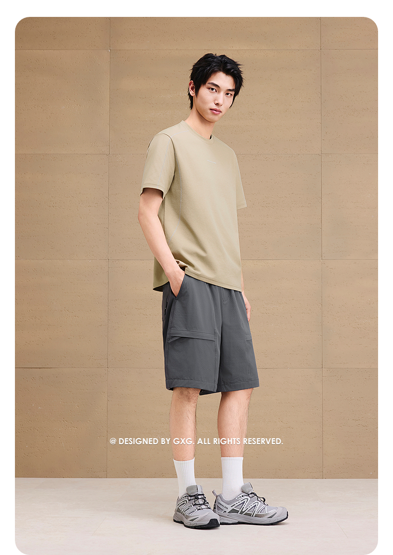 GXG男装 冲孔设计透气休闲短裤男士通勤宽松五分裤 2025夏季新品