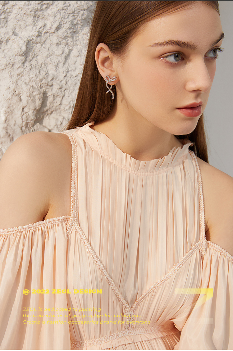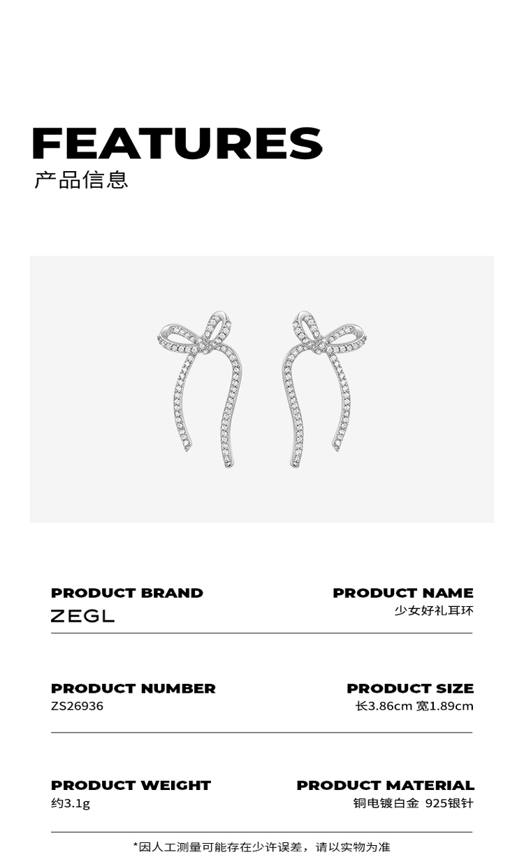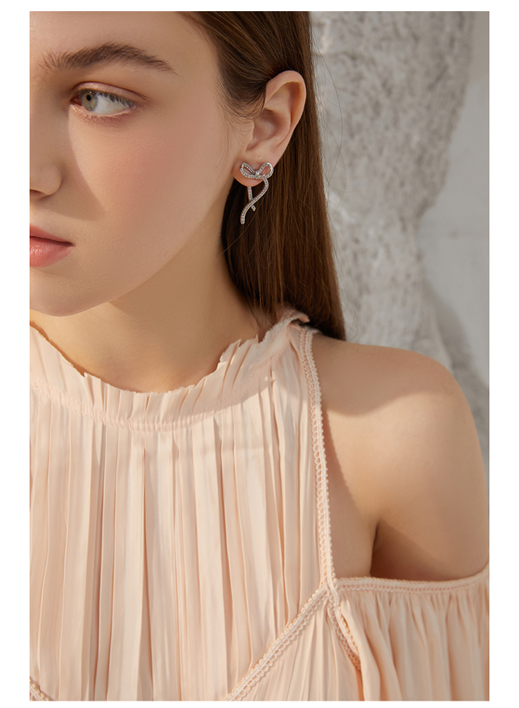 ZEGL蝴蝶结流苏耳环女高级感轻奢耳钉小众设计感925银针秋冬耳饰