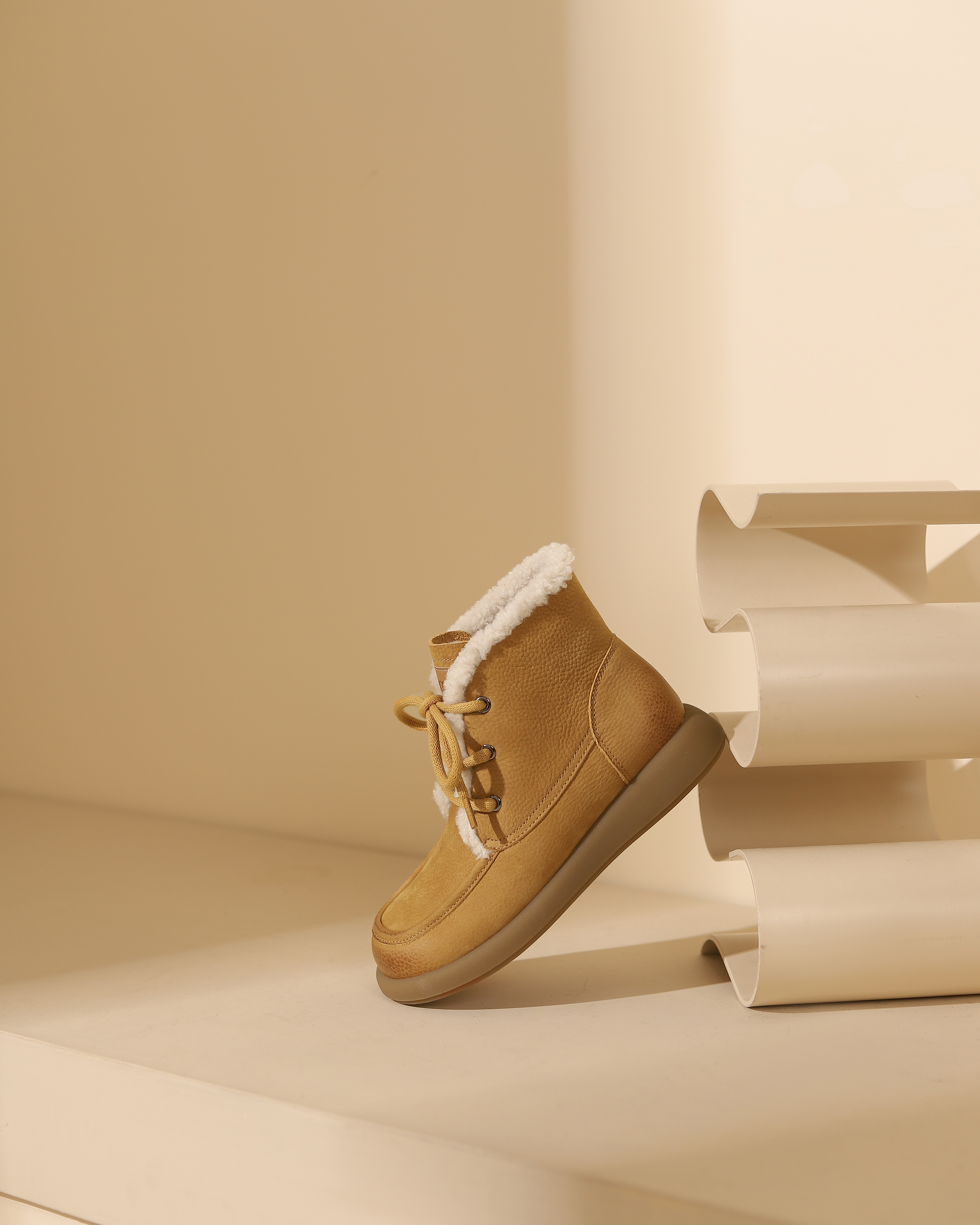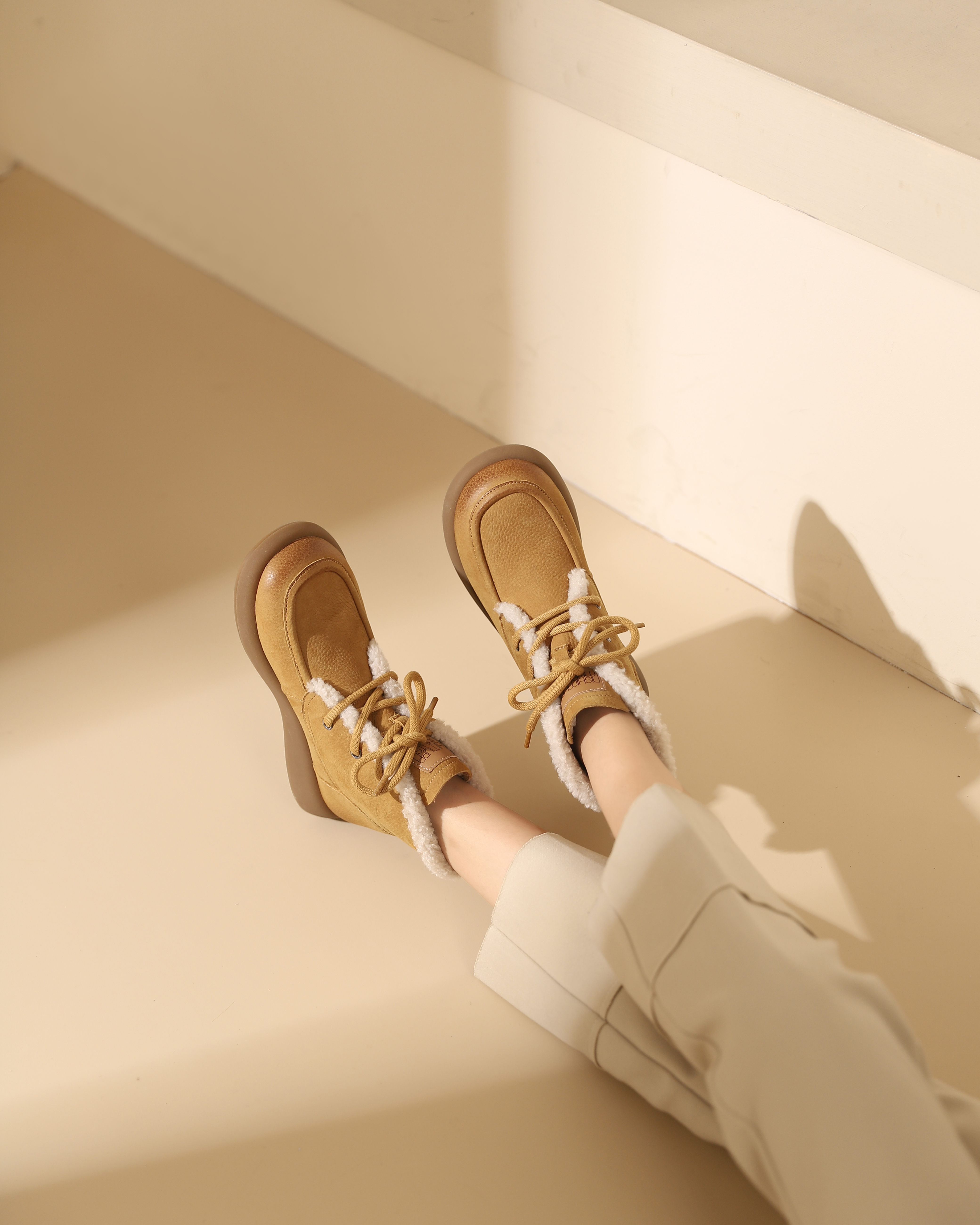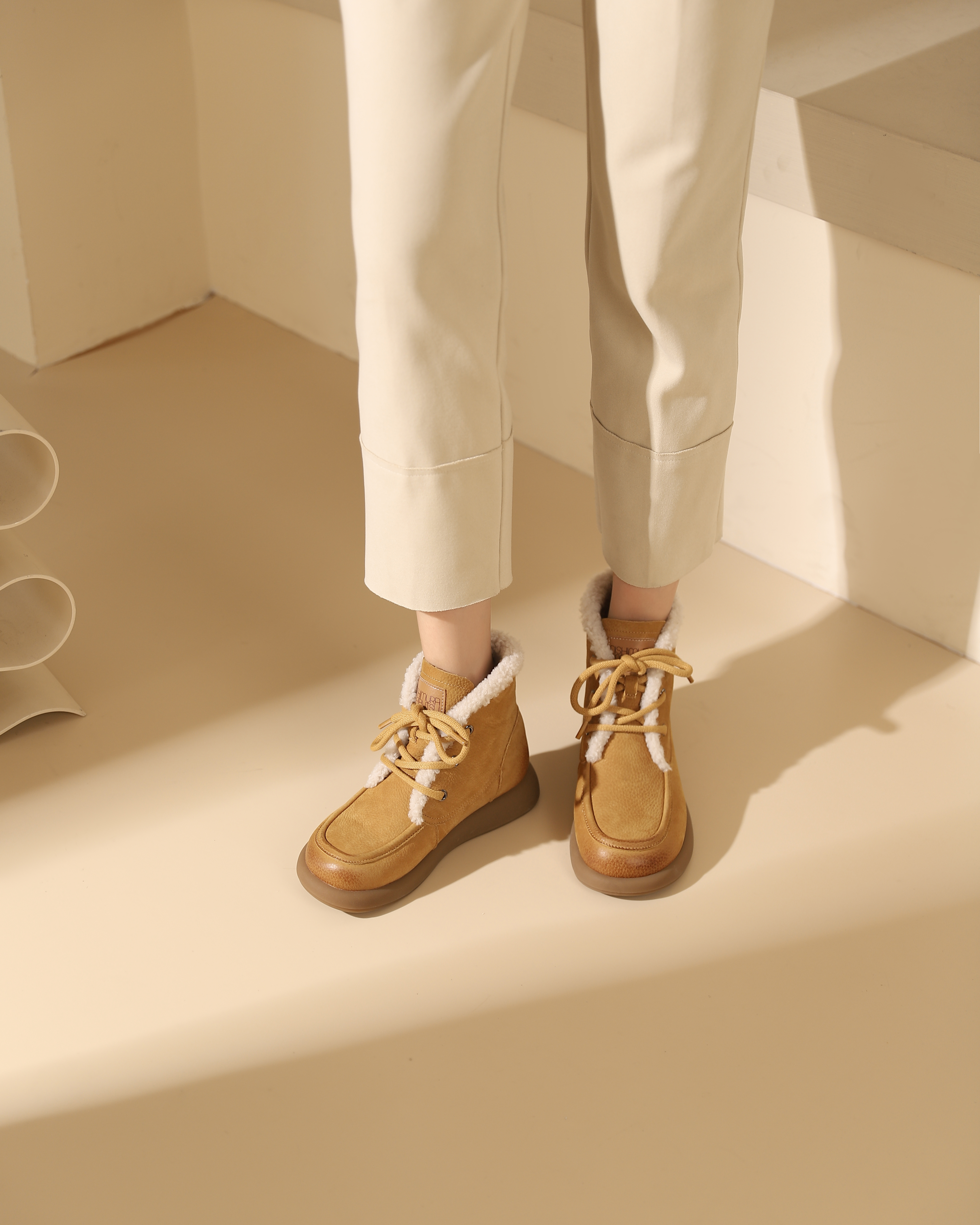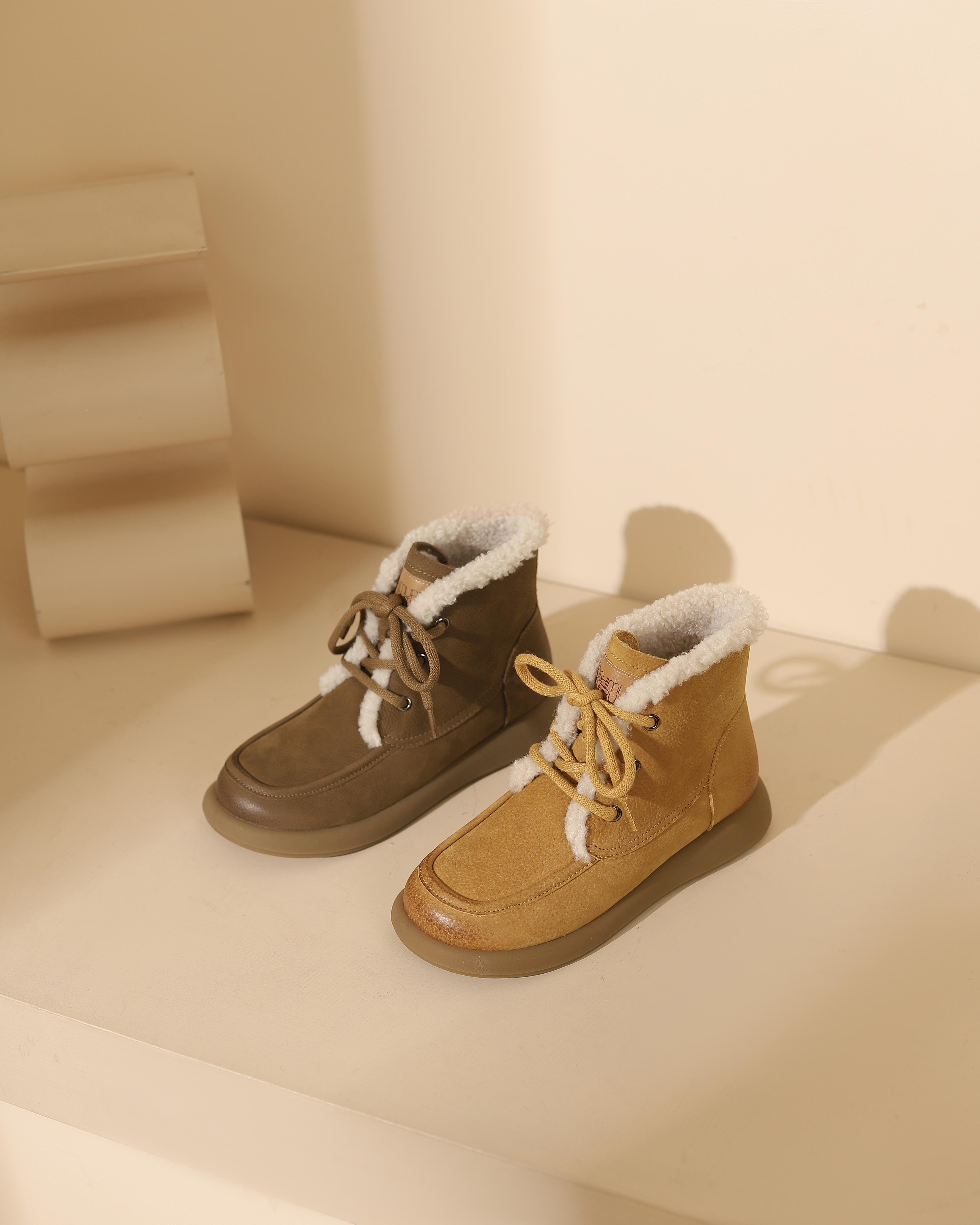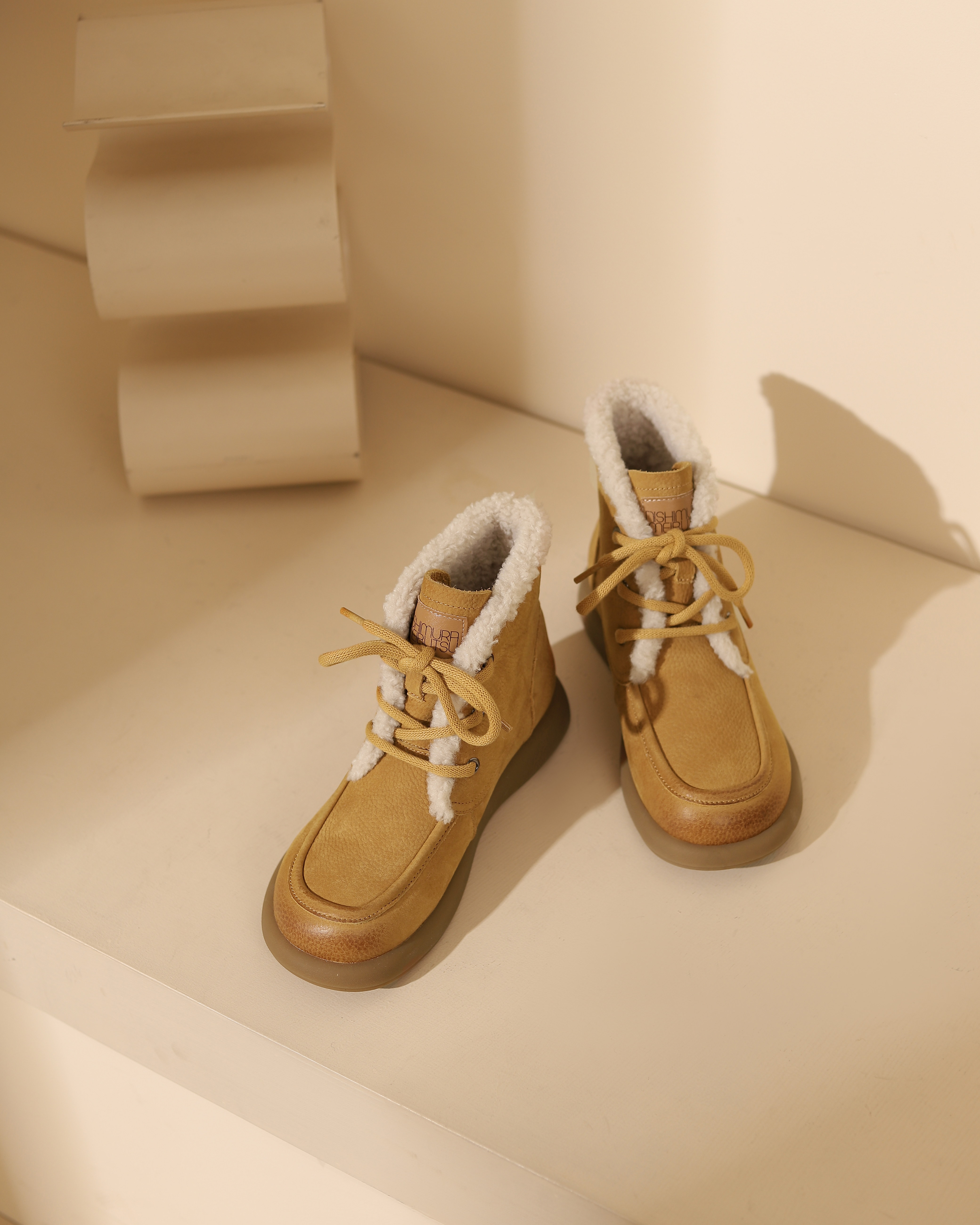 西村名物2023冬季季新品复古圆头粗跟毛靴系带短靴马丁靴X23DS45481