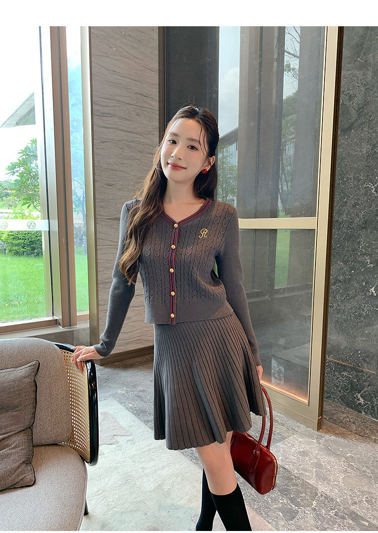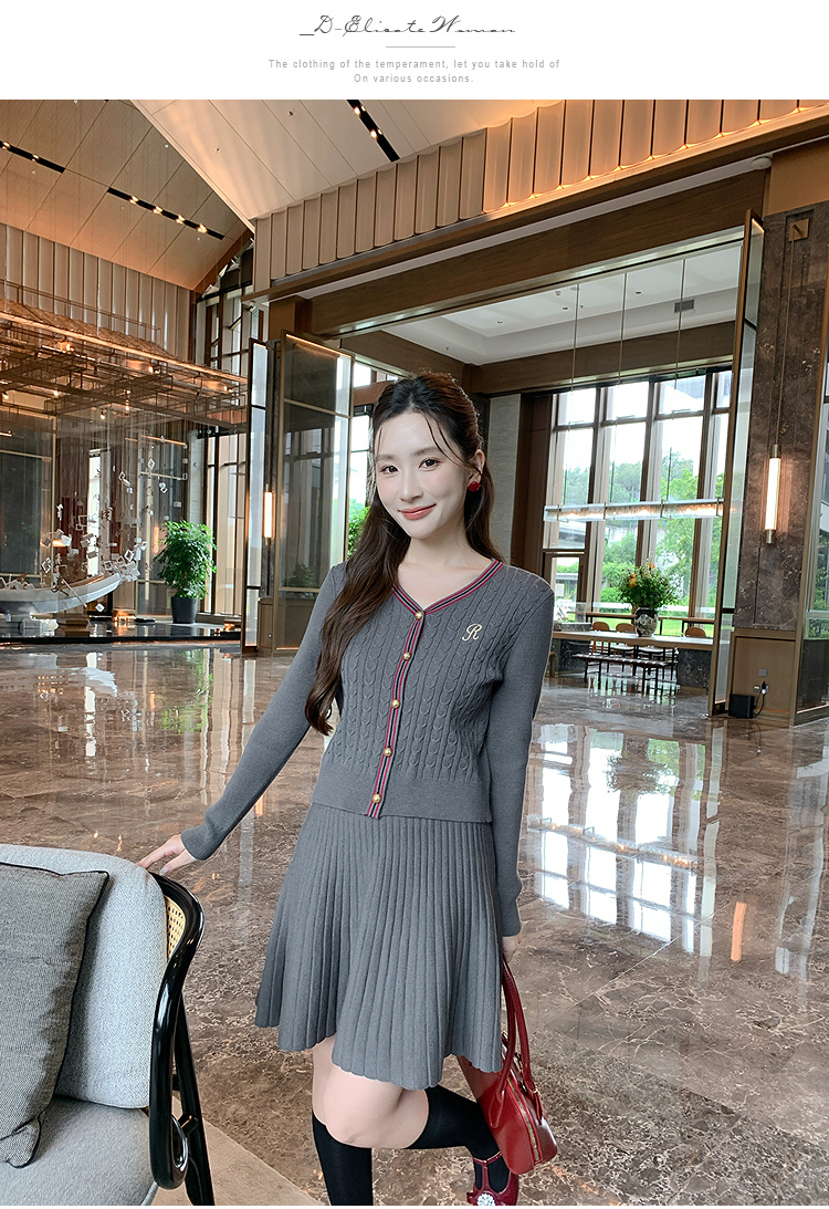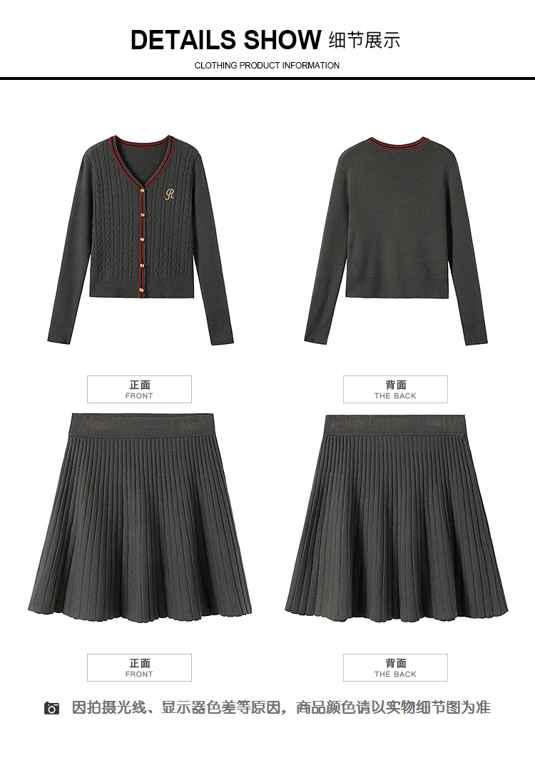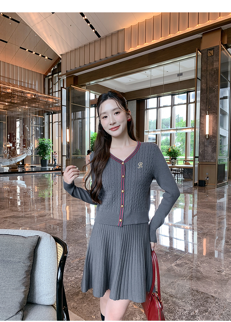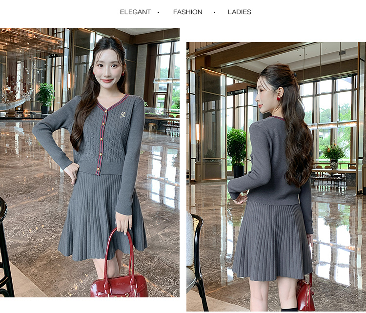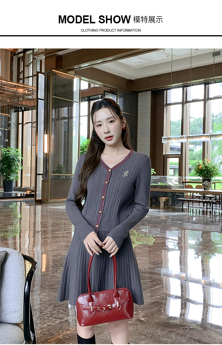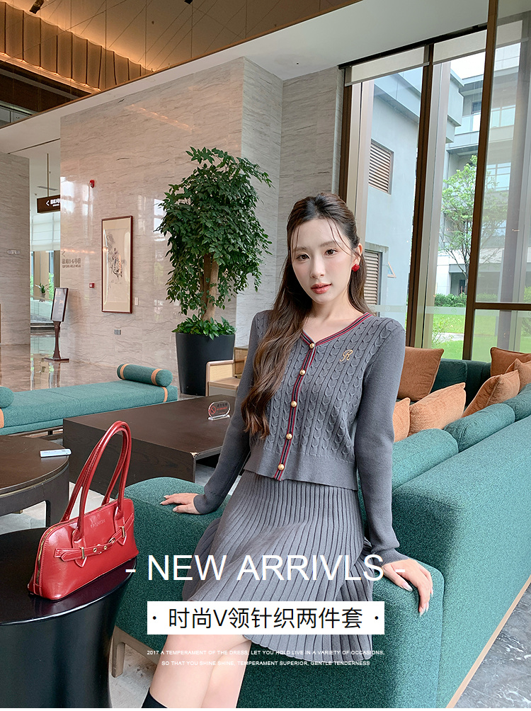 奢姿大码女装2025秋季气质V领针织两件套胖妹妹时尚简约通勤套装9853993459