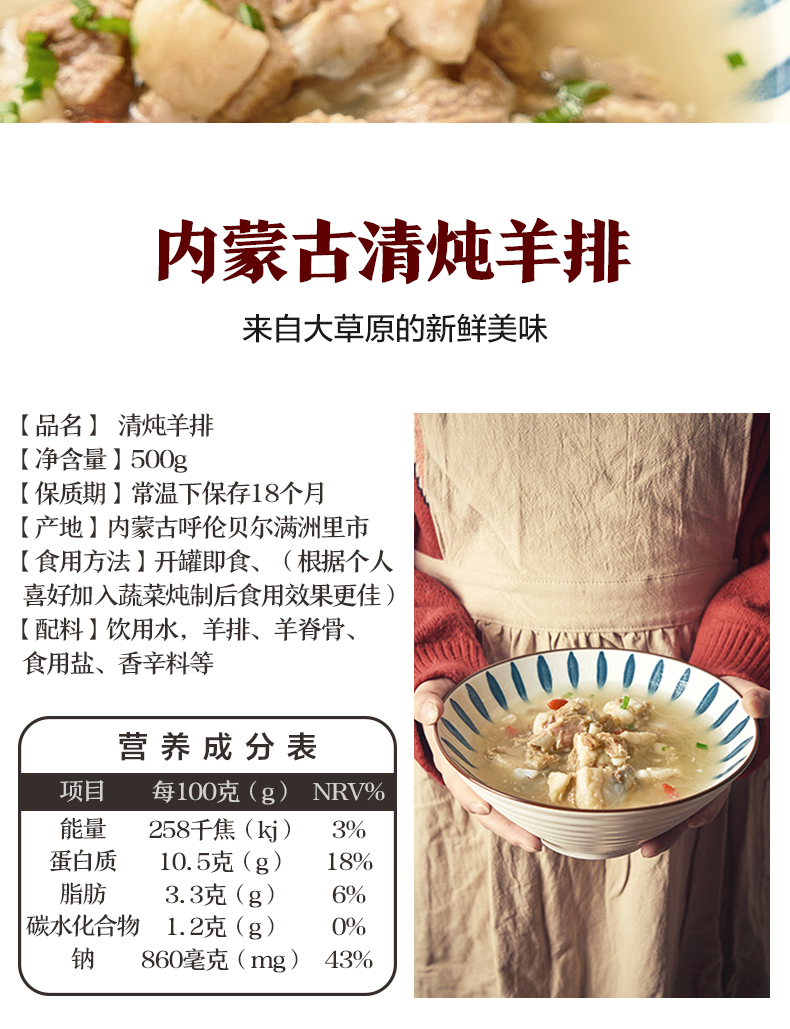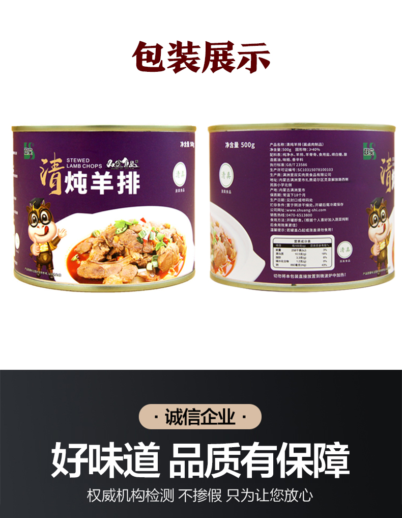 【原切羊排 肉质鲜嫩】双实清炖羊排罐头 500g 清真熟食 呼伦贝尔特产 草原散养羔羊 延续传统老味道