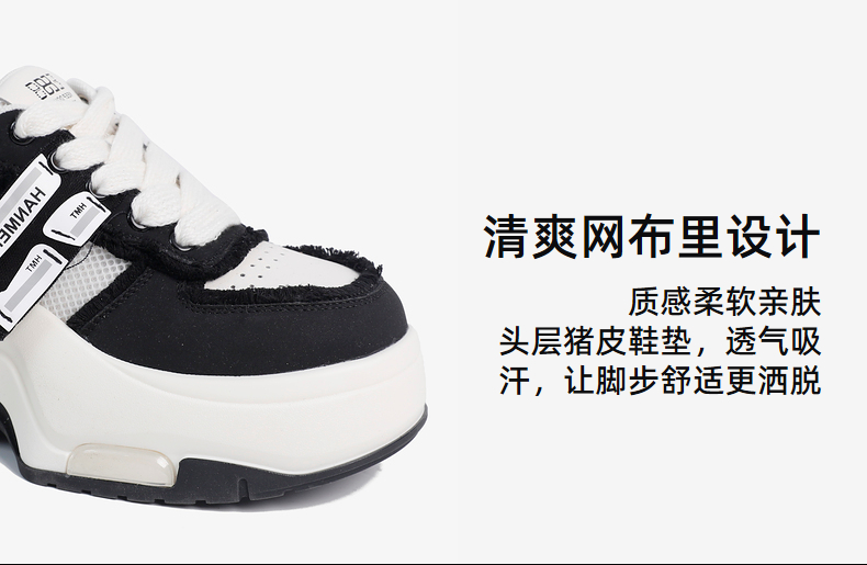 千百度厚底网面鞋女时尚休闲鞋透气小白鞋增高运动鞋A25330610