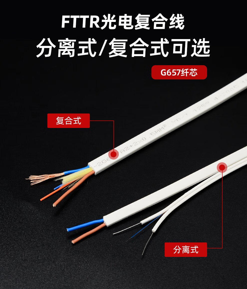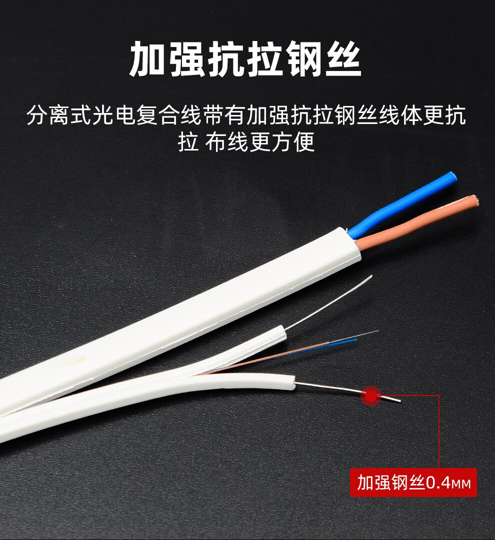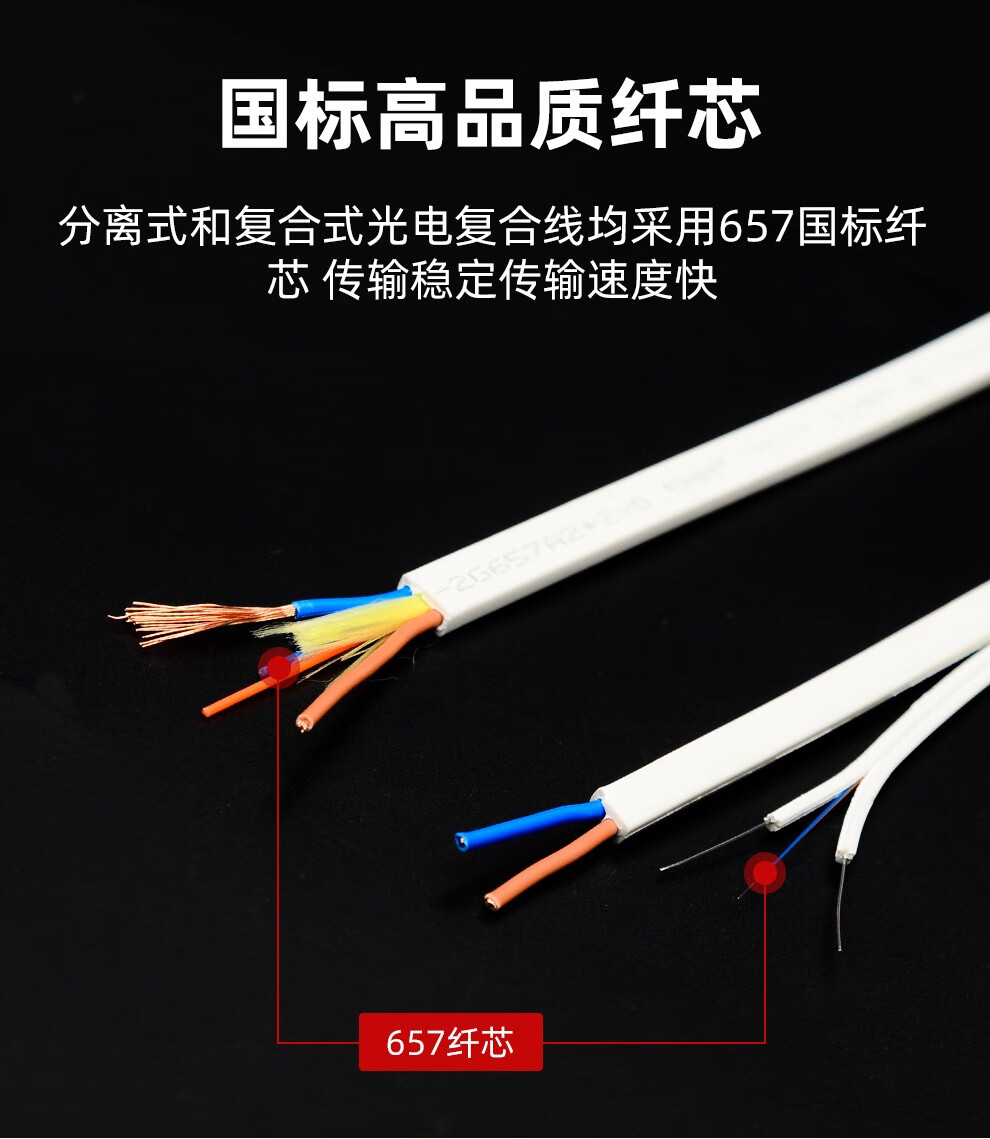 爆款 热销【FTTR@白皮室内光电复合缆】混合缆连接器扁平缆分离式GJXH光电复合缆0.5/0.75/1.0/1.5电线光纤电源复合线白色室内光纤电源一体线657纤芯