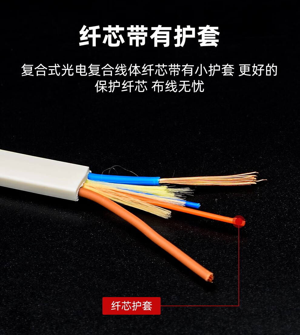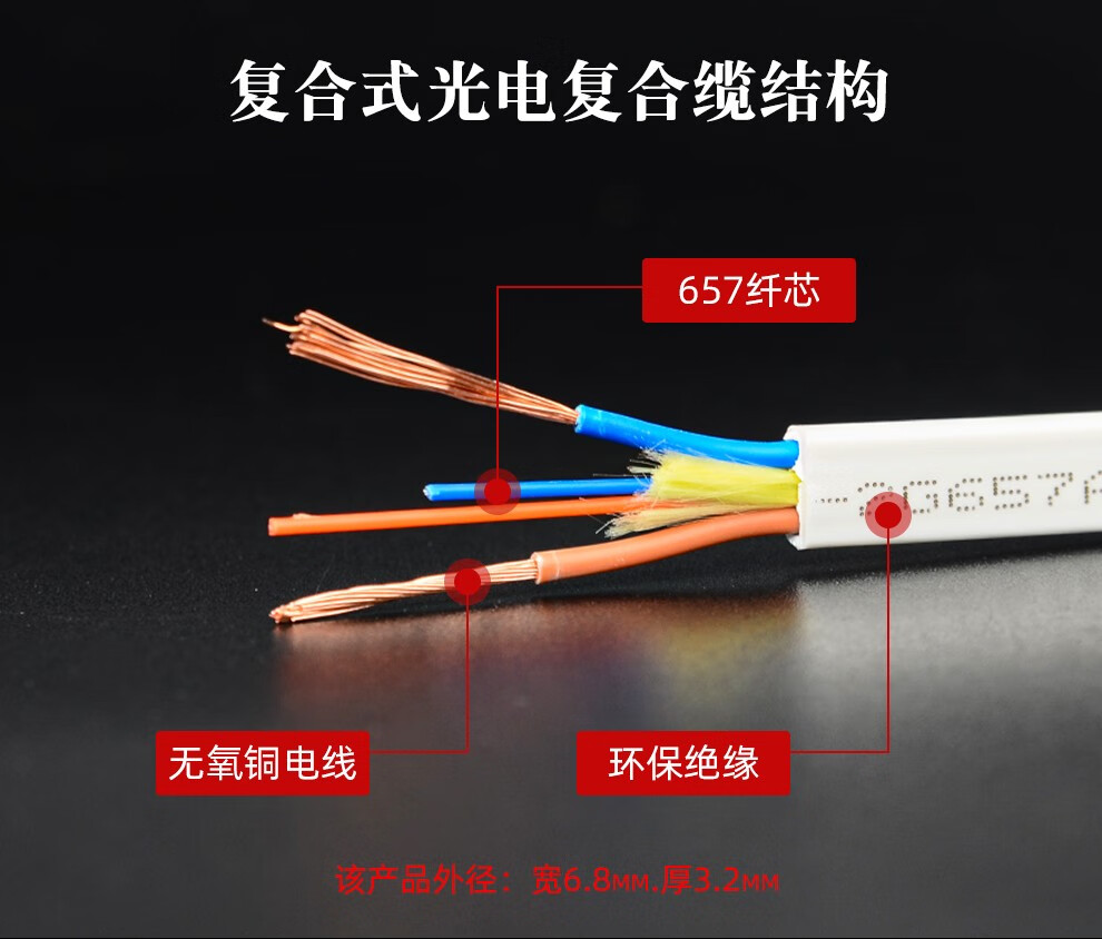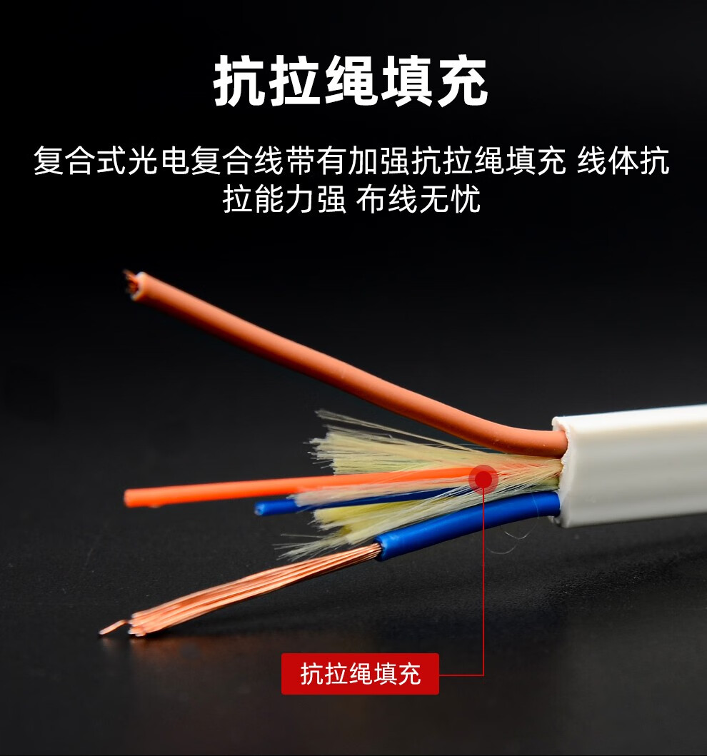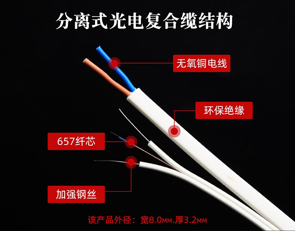 爆款 热销【FTTR@白皮室内光电复合缆】混合缆连接器扁平缆分离式GJXH光电复合缆0.5/0.75/1.0/1.5电线光纤电源复合线白色室内光纤电源一体线657纤芯