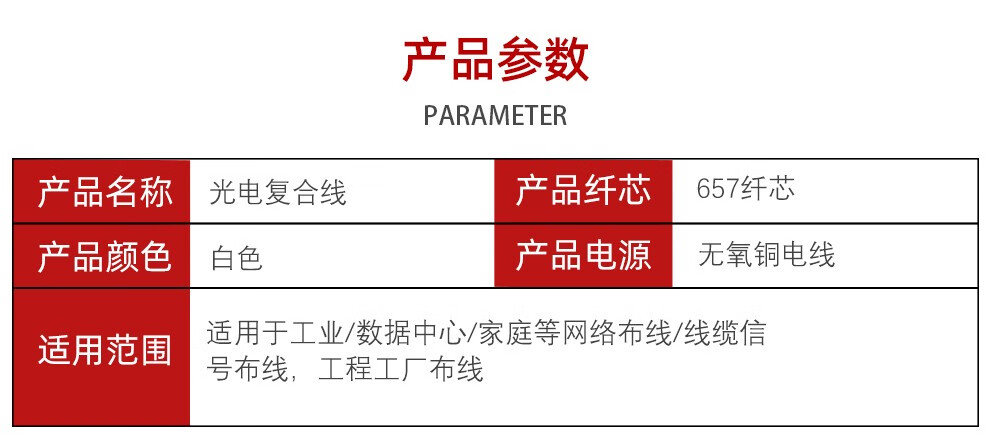 商品名称:光电复合缆光纤电源复合线白色室内光纤电源一体线GJFJH+2芯电源线657纤芯带2芯0.5电线 【并列式】2芯657纤芯+2芯0.5电线