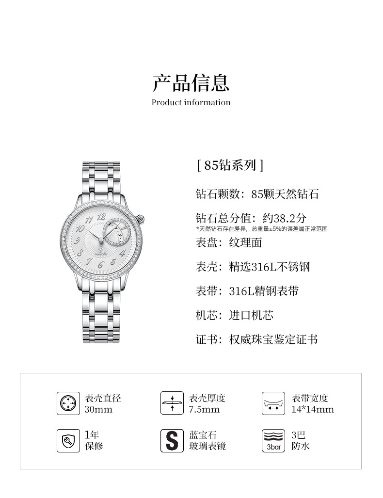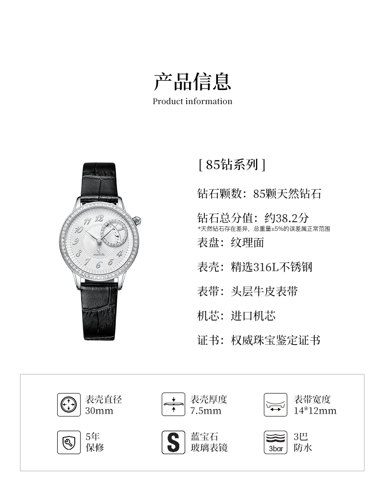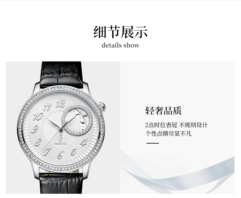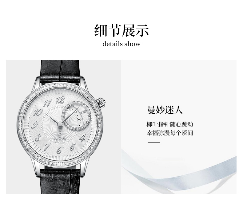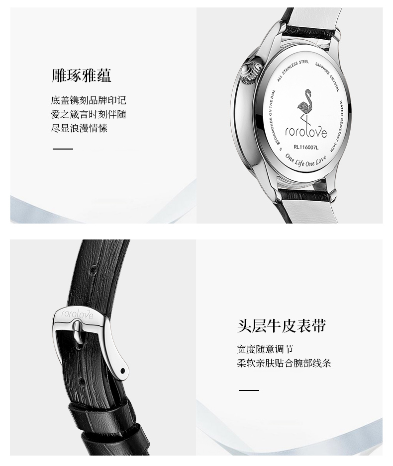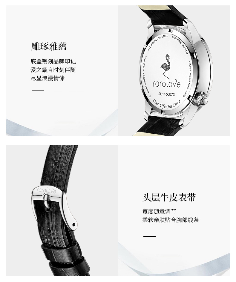 【男士腕表】ROROLOVE 天然钻石腕表 男士钻石手表头层牛皮皮带进口机芯 白色情人节礼物 (110/85颗钻石)