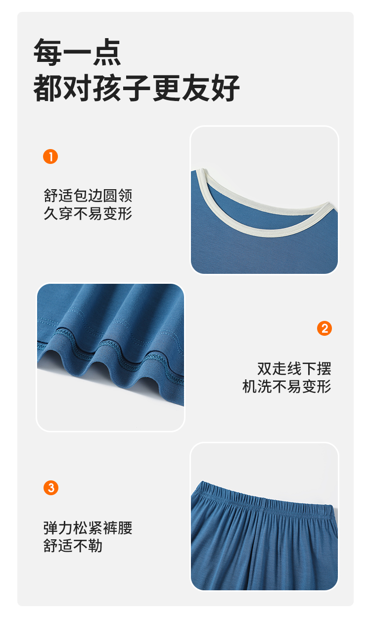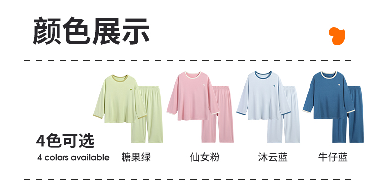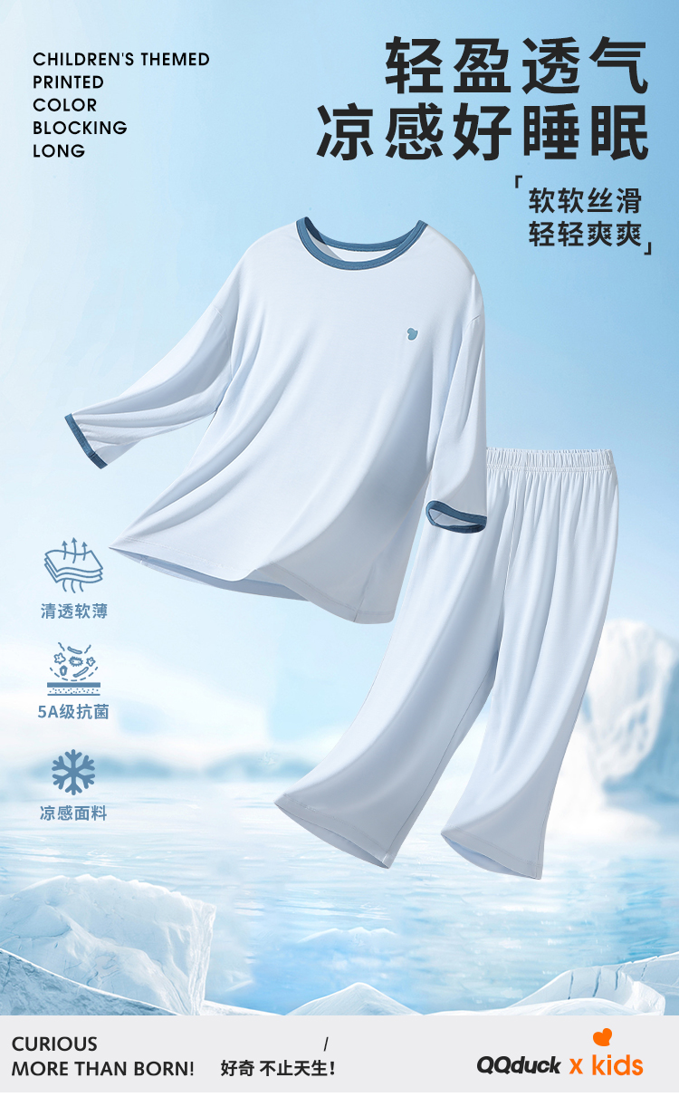 【男女同款】【凉感】【120-165】【可可鸭】儿童春夏长袖家居服凉感抗菌七分袖空调服