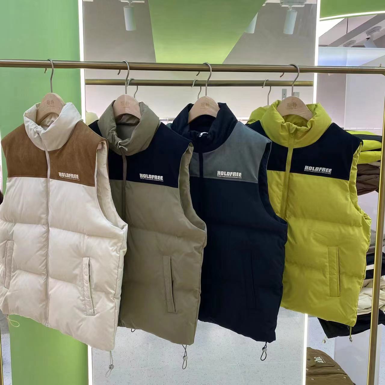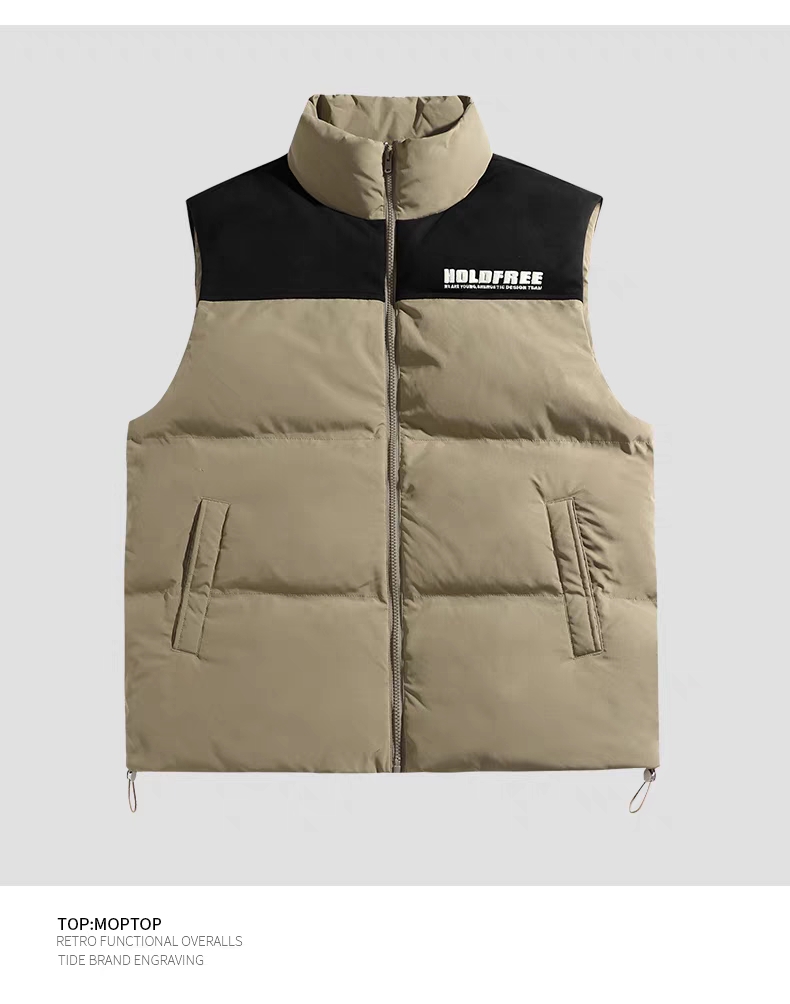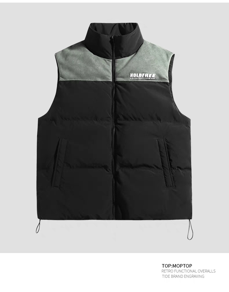 12701# 潮牌秋冬新款男女同款,美式棉服马甲外套休闲保暖,宽松时尚。 黑色、军绿 M~2XL