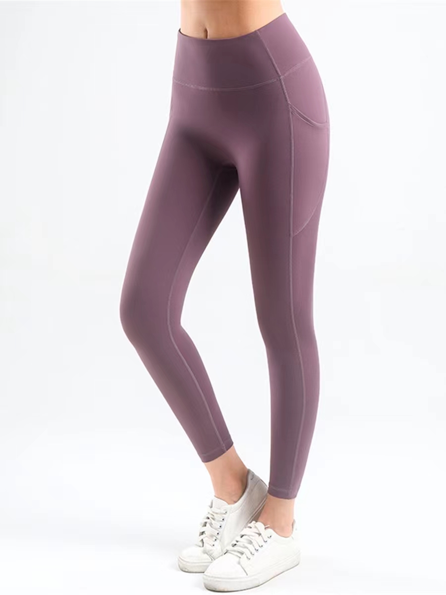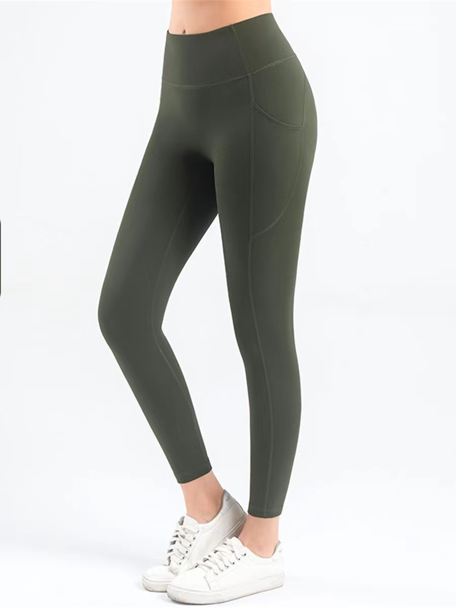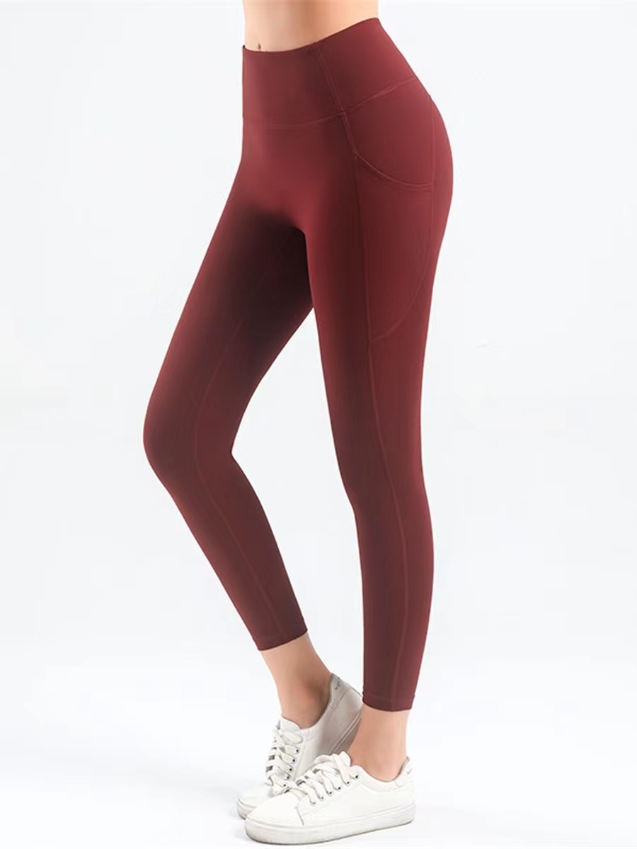 带口袋瑜伽裤女高腰收腹外穿无缝裸感提臀打底裤