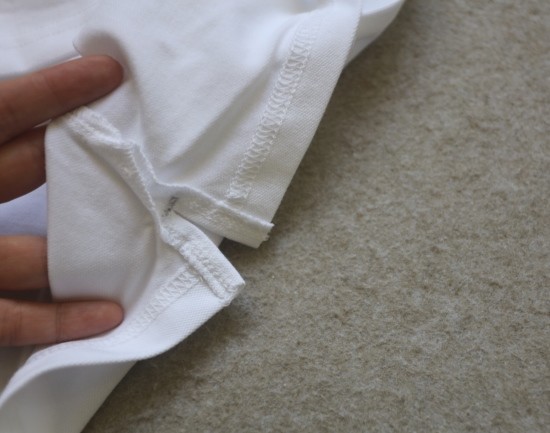 乖宝款 领口两粒扣 底边两侧没有开叉 单道缝线收口的