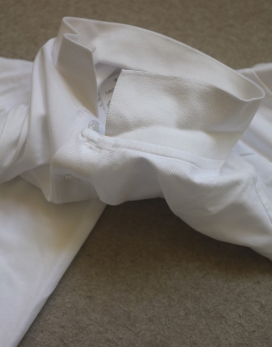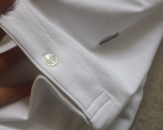 成人款 领口三粒扣 底边两侧有小开叉 双道缝线收口的