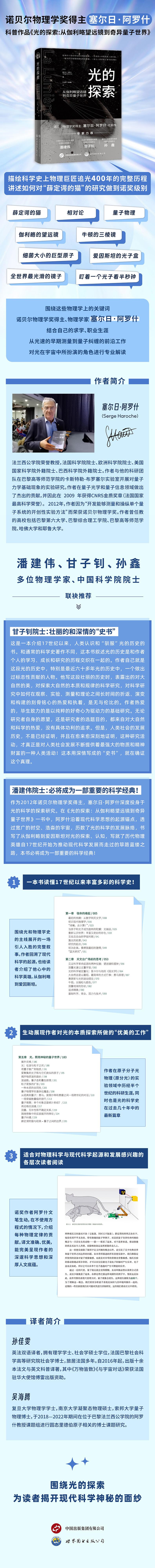 在《光的探索:从伽利略望远镜到奇异量子世界》一书中,诺贝尔物理学奖得主、物理学家塞尔日·阿罗什将自己的求学、职业生涯置于科学发现的丰富谱系中,从伽利略、牛顿到爱因斯坦和费曼,从光速的早期测量到量子纠缠的前沿工作,阿罗什教授对光在我们如何观察和理解宇宙中所扮演的角色进行了深入的探讨。