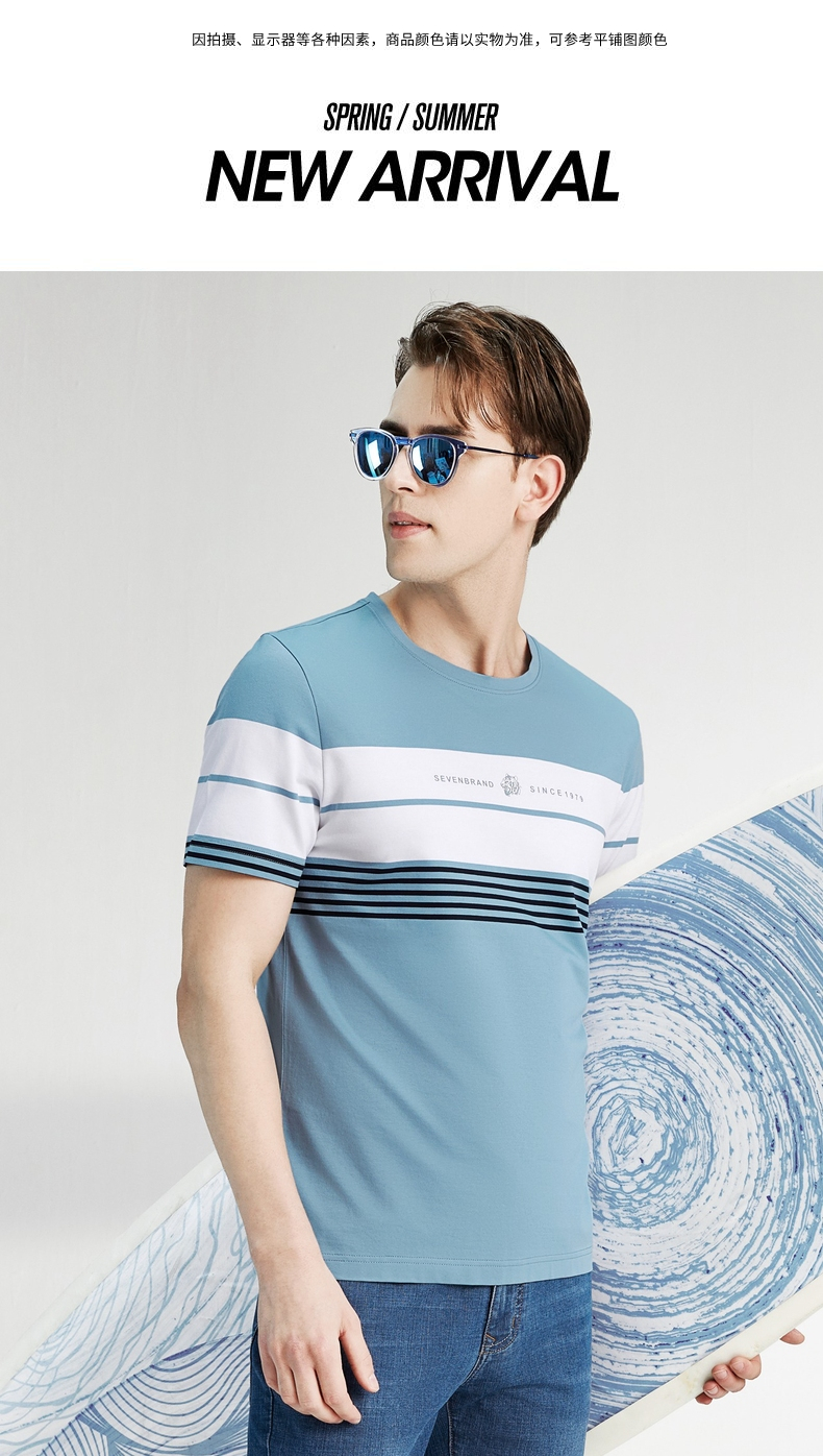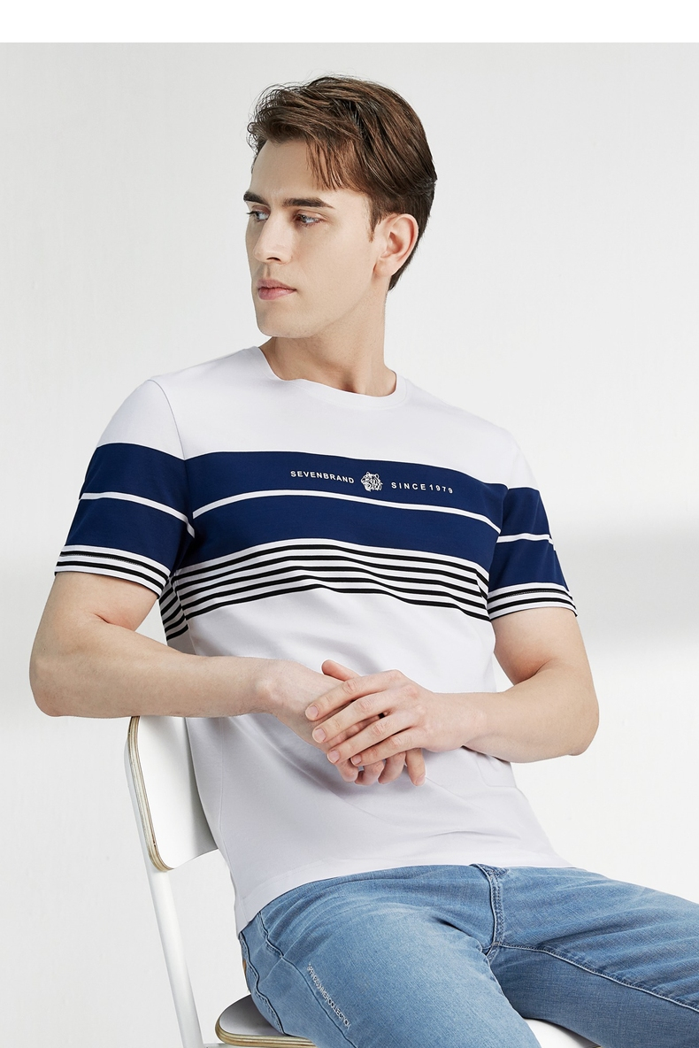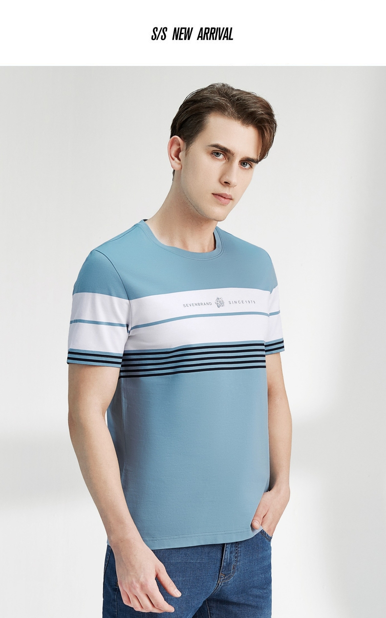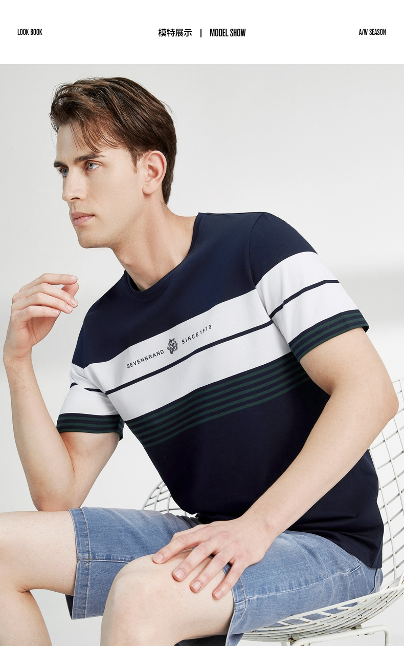 柒牌男装短袖T恤春夏新款条纹圆领小老虎时尚青年休闲上衣薄 122T71060