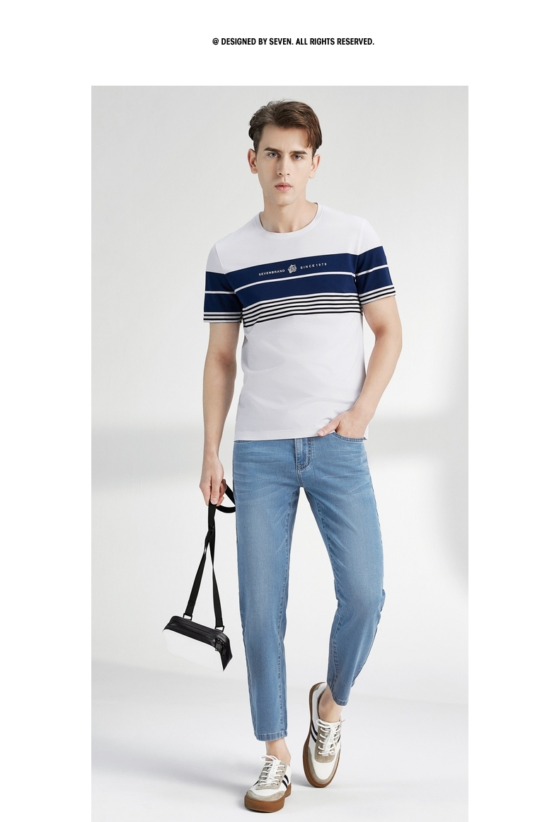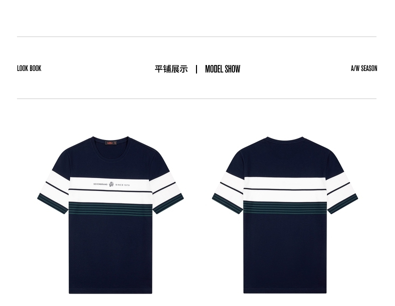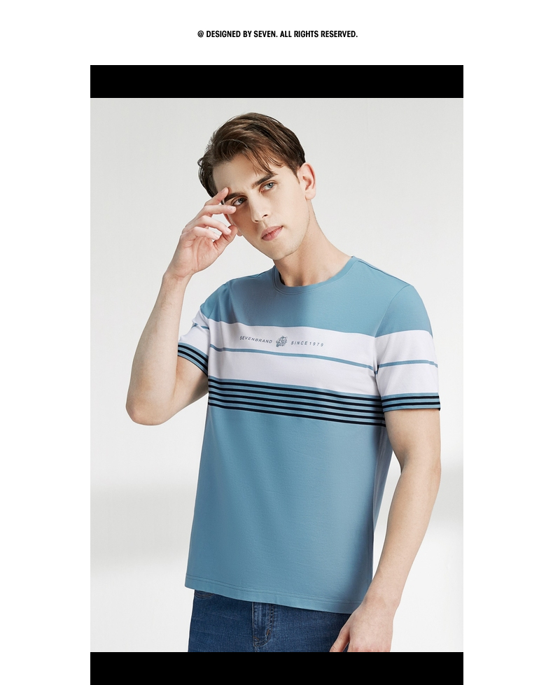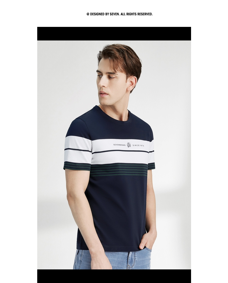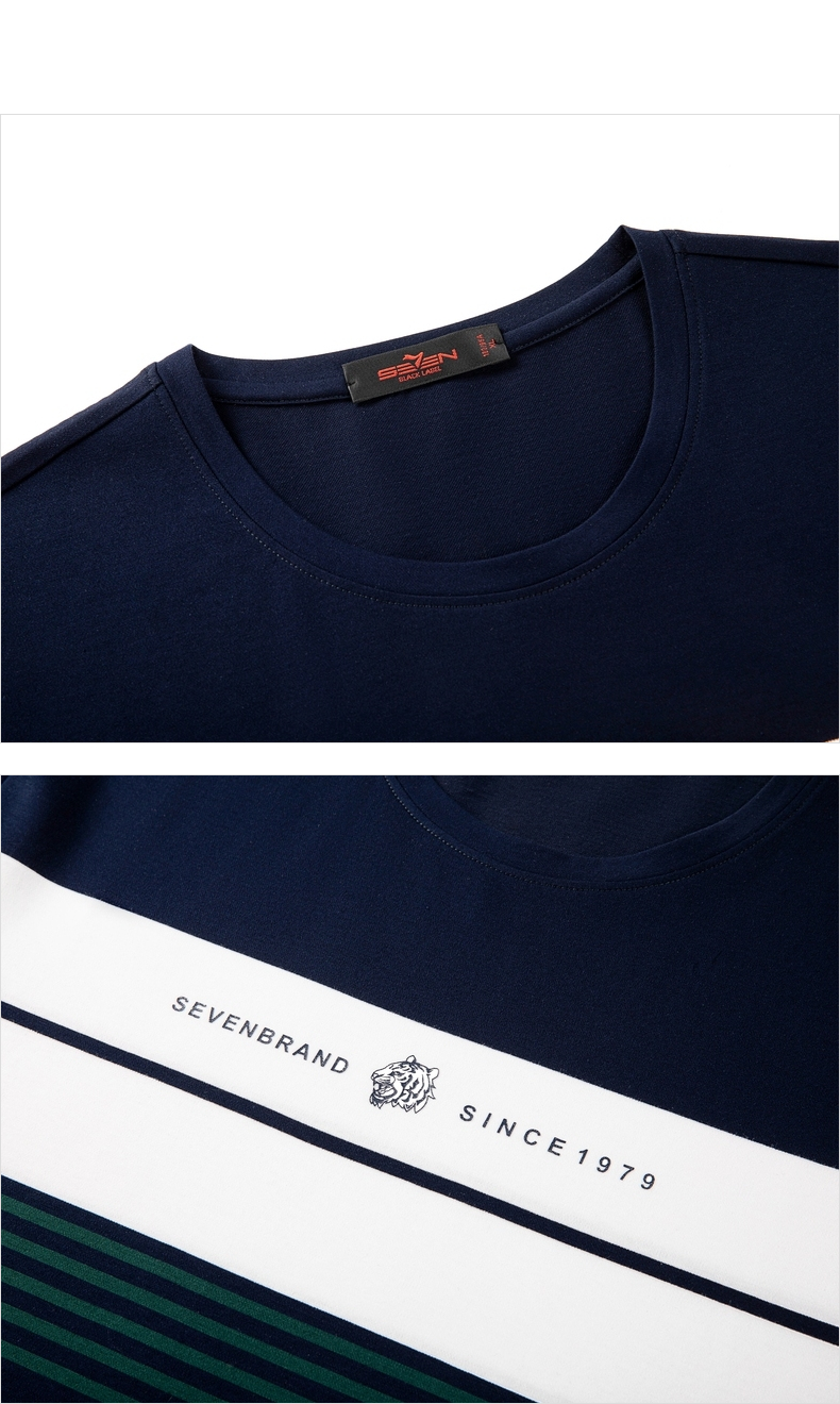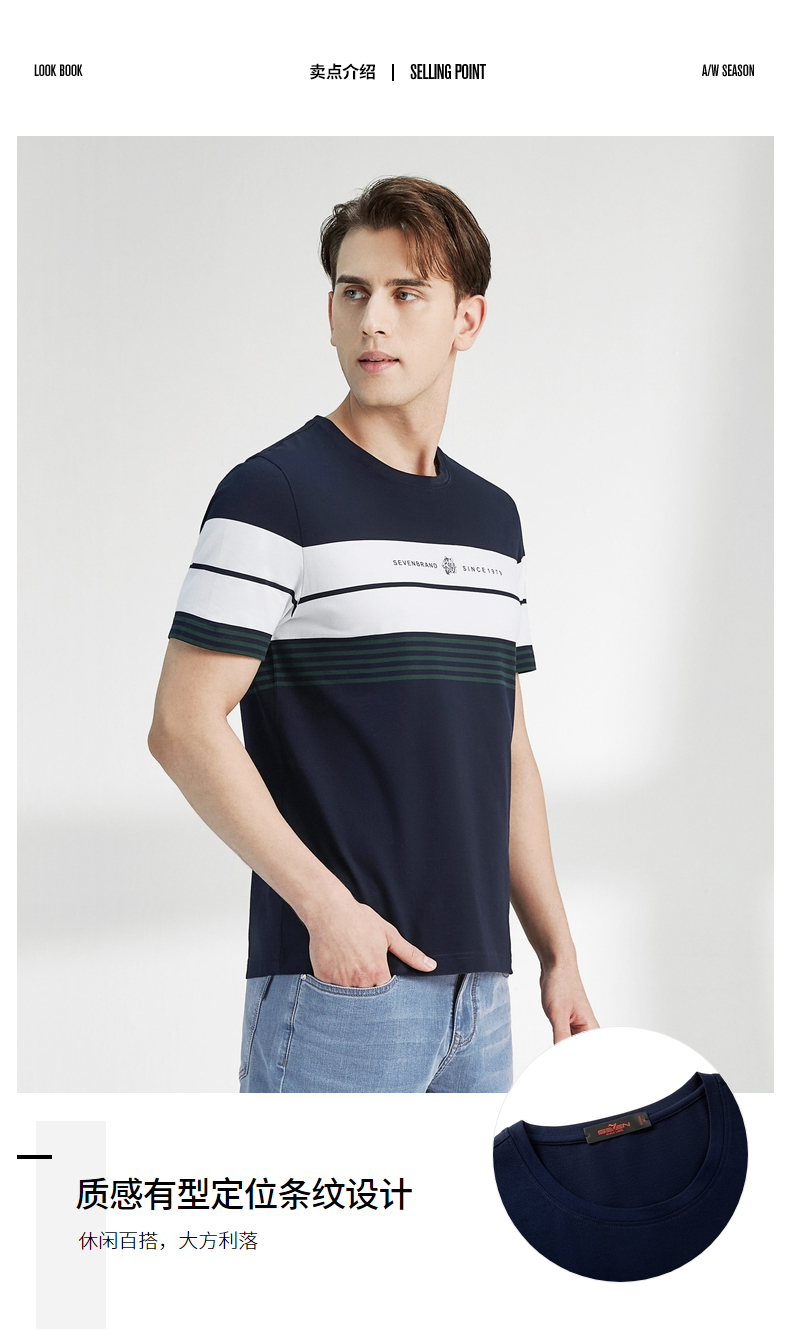 柒牌男装短袖T恤春夏新款条纹圆领小老虎时尚青年休闲上衣薄 122T71060